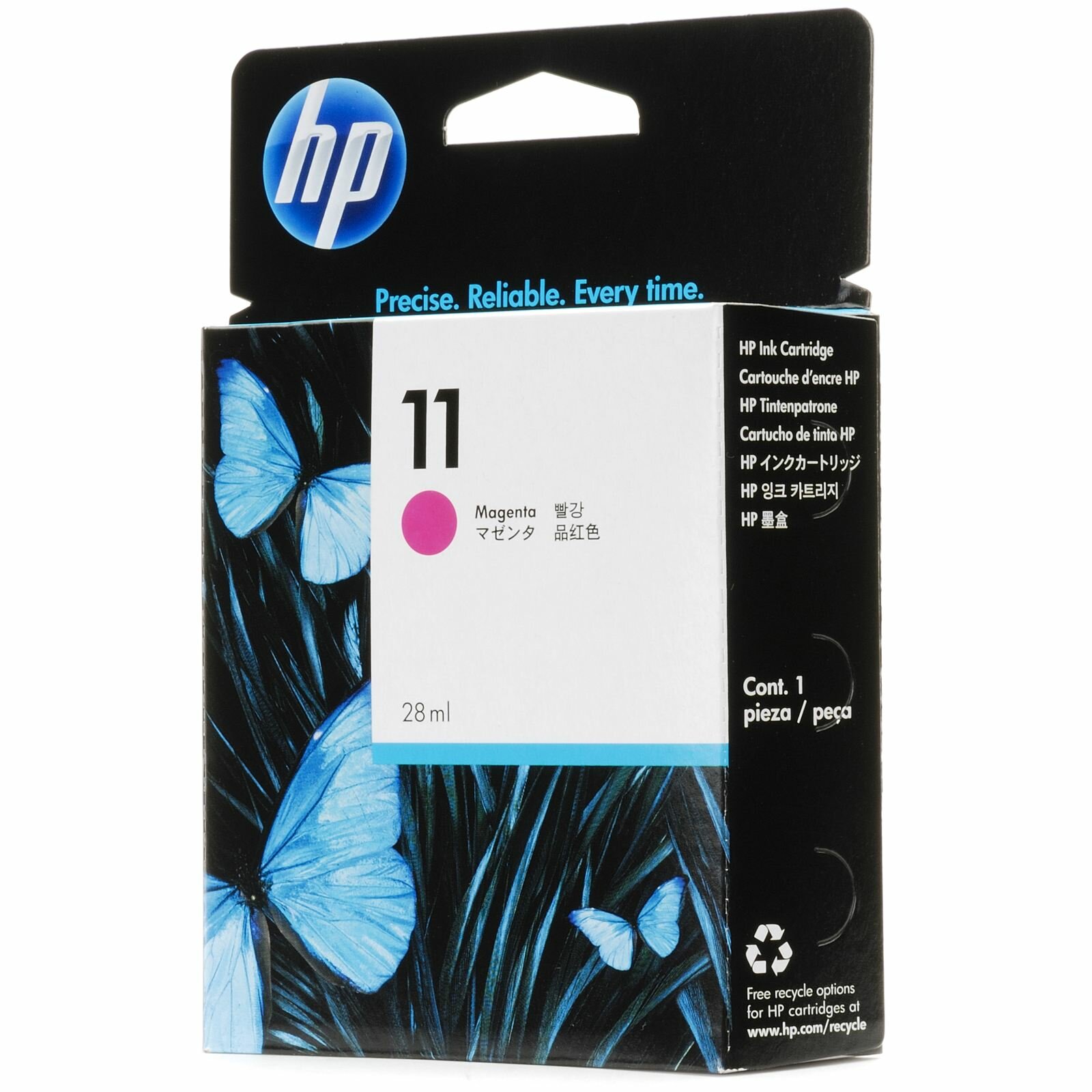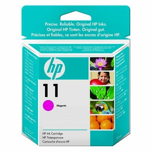 Картридж пурпурный Hp № 11, 28 мл Картридж с пурпурными чернилами Hp №11. В каждом чернильном картридже реализована интеллектуальная технология, оптимизирующая качество печати и автоматически предупреждающая пользователя о малом остатке чернил. Цветные чернильные картриджи Нр №11 обеспечивают чёрно-белую печать лазерного уровня и цветную печать фотографического уровня на высококачественной бумаге. Ресурс картриджей – 1750 страниц при среднем заполнении.