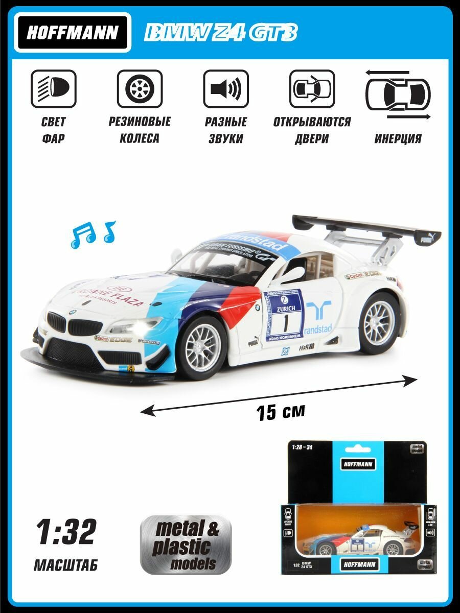 Машина металлическая Hoffmann BMW Z4 GT3 1:32 звук свет Модель машины BMW Z4 GT3 1:32