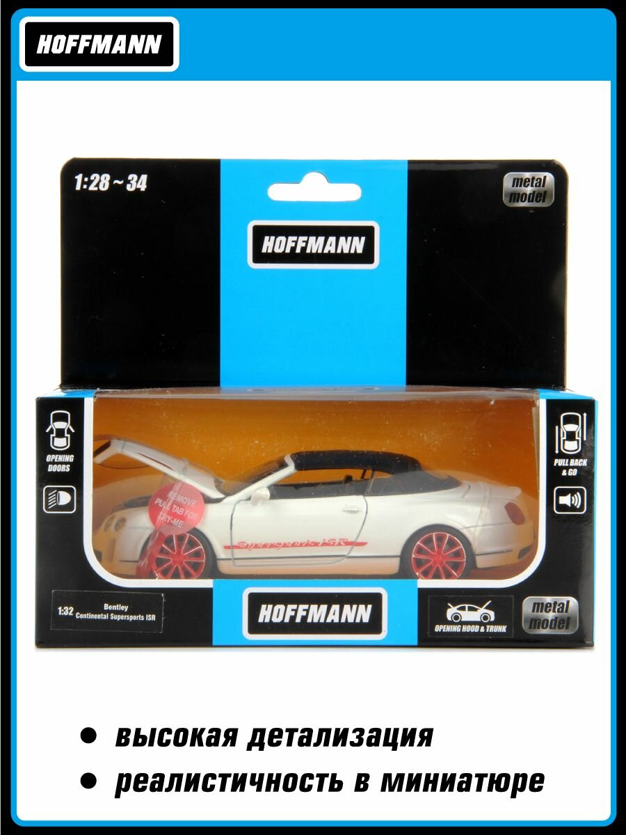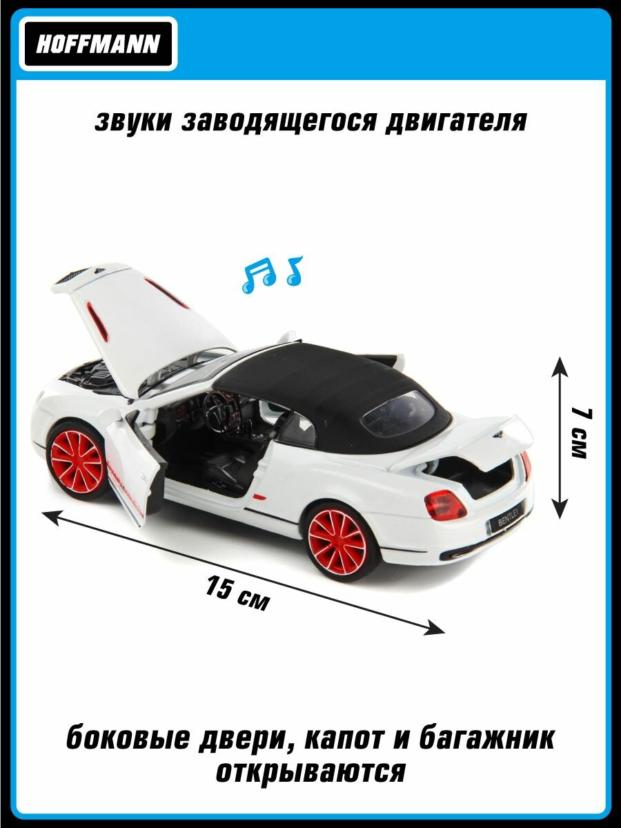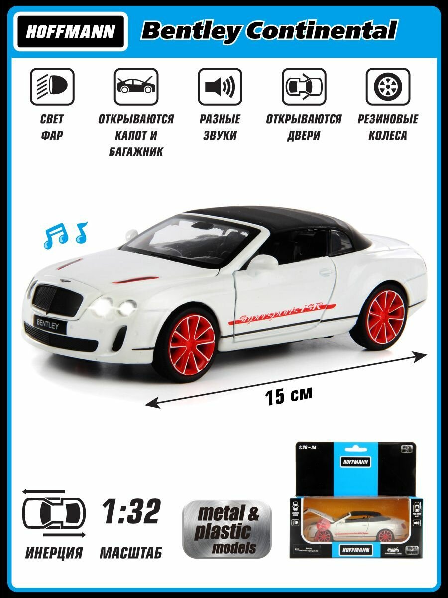 Машинка коллекционная металлическая Bentley Continental GT3 1:32 Hoffmann / Детская инерционная игрушка для мальчиков / Модель машины для детей со световыми и звуковыми эффектами Модель машины Bentley Continental Supersports Convertible ISR 1:32