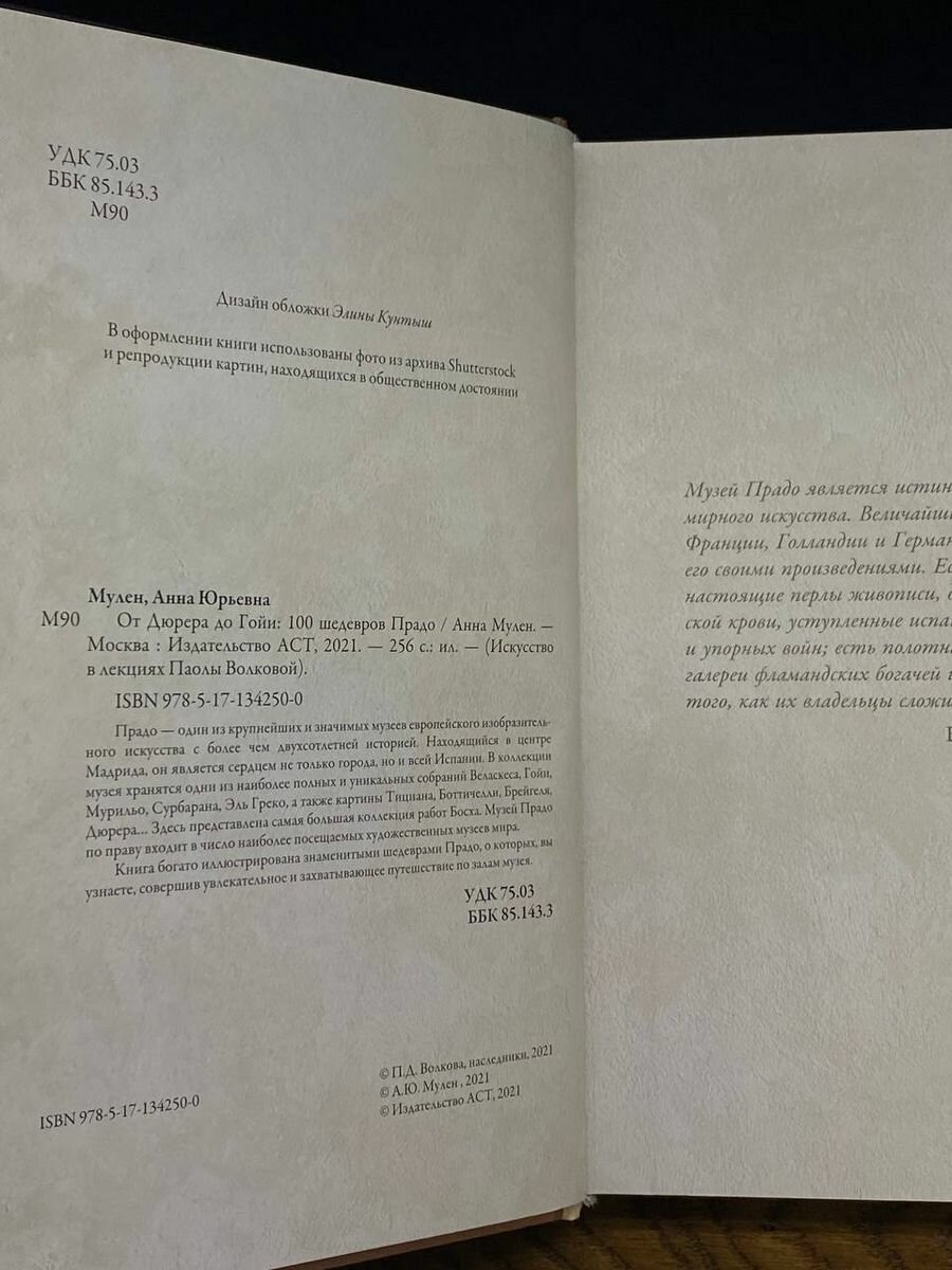 В жизни удалось побывать в великих картинных галереях мира, но Прадо... Это совершенно особенный мир! Побывав там шесть лет назад, не могу забыть своих впечатлений! Очень хочу туда снова! Бесконечно ругаю себя, что не купила там книгу о галерее, поэтому старательно искала что-то подобное в Читай-городе и вот нашла! Это настоящее путешествие по великой галерее. Каждый вечер перед сном "осматривала" творения одного художника, и так несколько вечеров. Какое это удовольствие! Удовольствие вновь возвращаться к этой книге-экускурсии. Хочется, чтобы в книге было не 100 шедевров, а 200, 300 ...