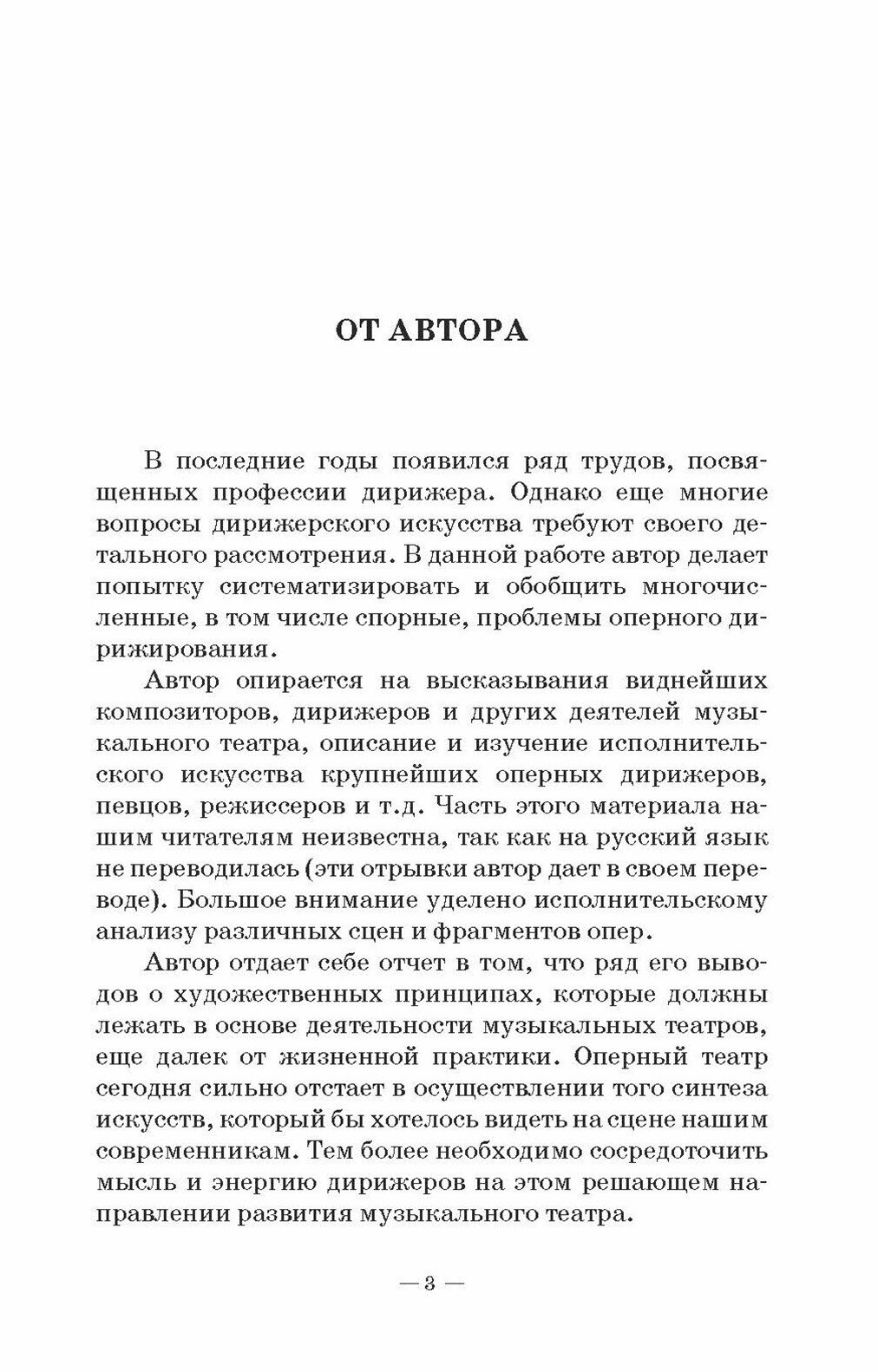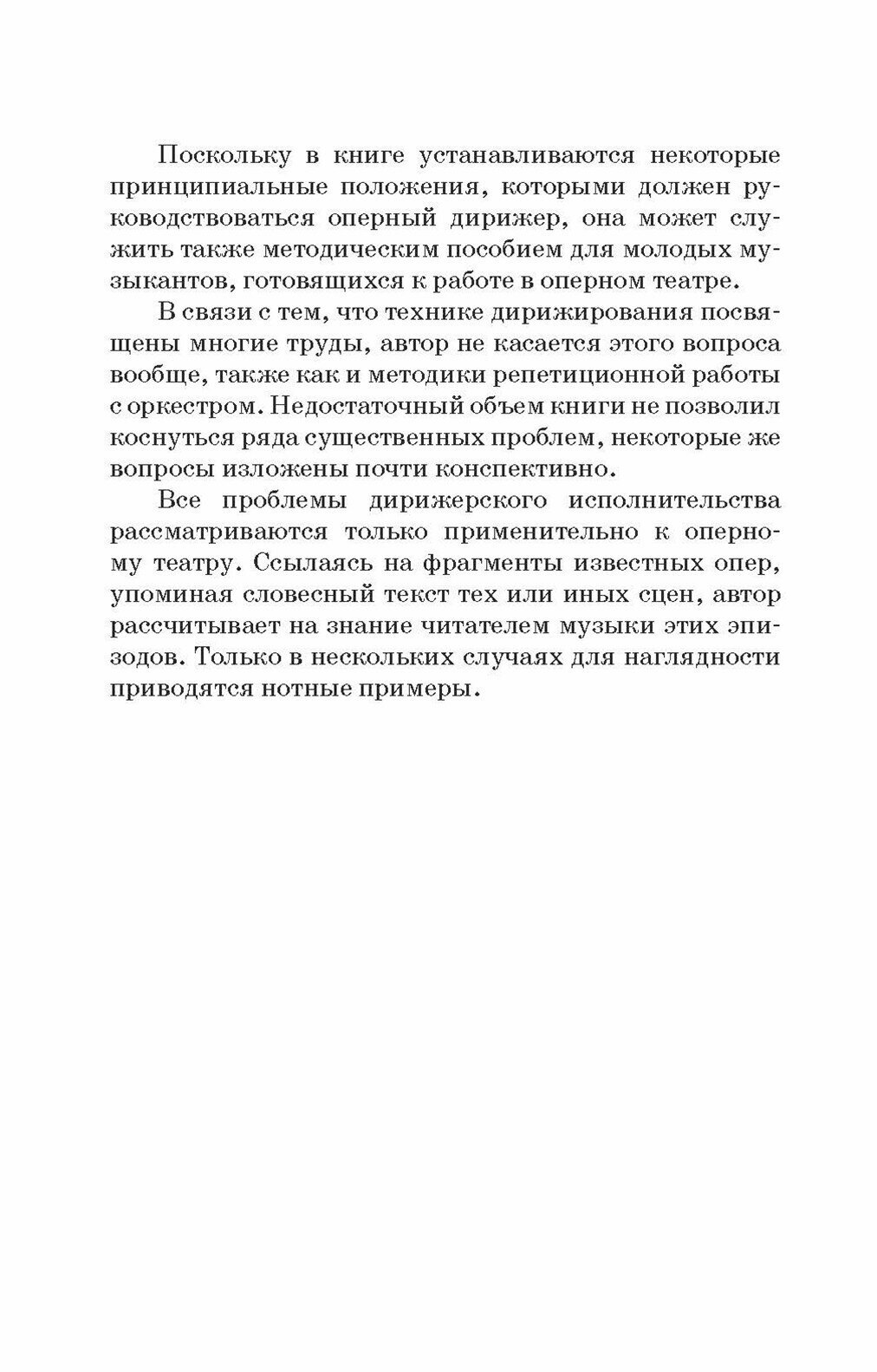 Поскольку в книге устанавливаются некоторые принципиальные положения, которыми должен руководствоваться оперный дирижер, она может служить также методическим пособием для молодых музыкантов, готовящихся к работе в оперном театре.