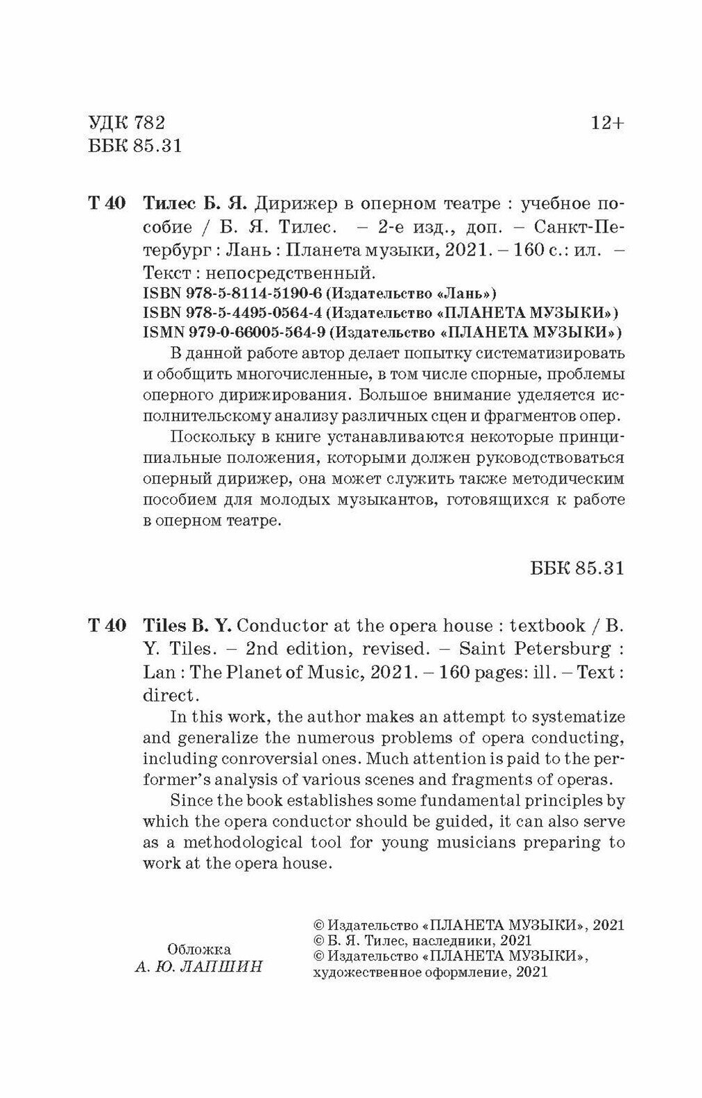 Дирижер в оперном театре. Учебное пособие (Тилес Борис Яковлевич); Планета Музыки, 2020