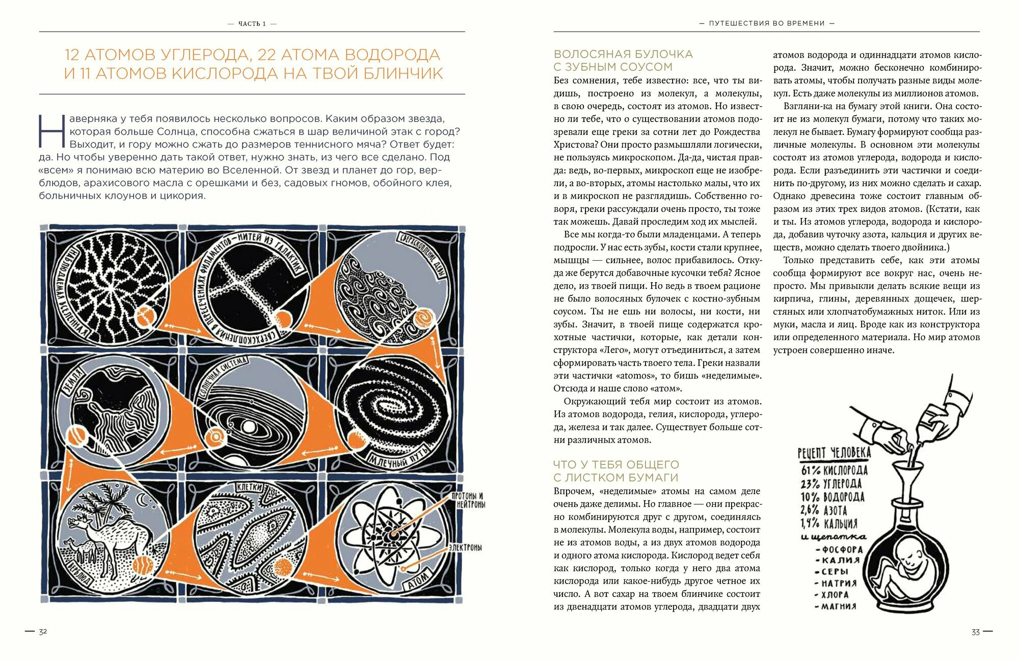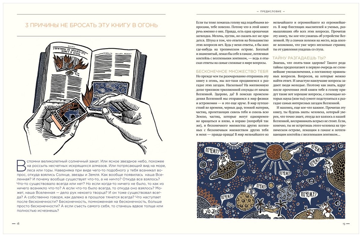 Попутно ты узнаешь, что такое черные дыры, частицы и античастицы, бозон Хиггса и многое другое. Ты сможешь понять, что значит самая знаменитая формула в мире - E = mc2, каким может быть мир, где двадцать измерений, что случилось 14 сентября 2015 года, почему Вселенная похожа на черничный пирог и как этот пирог испечь. И хотя в этой книге объясняется далеко не все, она научит тебя задавать правильные вопросы. А правильно поставленный вопрос - это первый шаг на пути к ответу, который, возможно, найдешь именно ты.