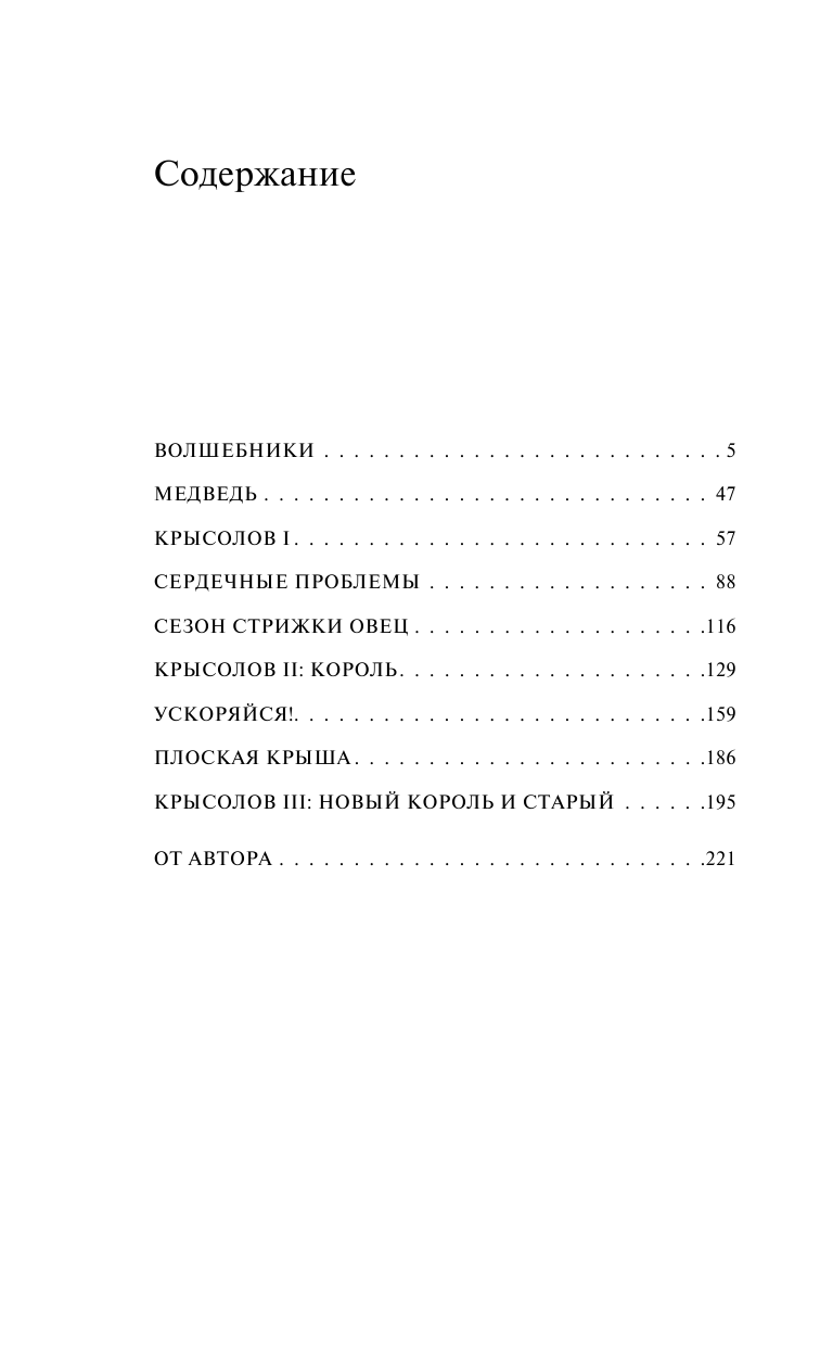 Девушка-музыкант заводит дружбу со стаей птиц, и это открывает перед ней неожиданные возможности. Вызванный ко двору крысолов оказывается втянут в борьбу за трон разоренного королевства. Молодой муж обнаруживают соседство с огромным плюшевым медведем, которого купила его супруга, пугающим из-за его слишком внимательного взгляда. Попавшиеся в искусно расставленные силки и в капканы, созданные собственными руками, герои дебютного сборника Наоми Исигуро стремятсяк свободе и полету, и перемены, что ждут их за поворотом, превосходят самые смелые ожидания.