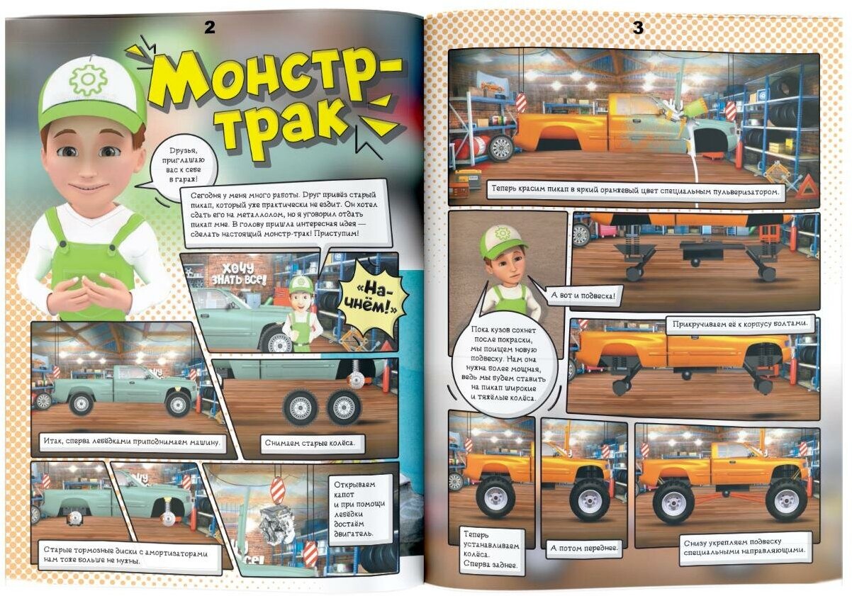 ХОЧУ ЗНАТЬ ВСЁ О МАШИНАХ! — это настоящий подарок для юных автолюбителей. В книге ребята познакомятся с Винтиком — популярным персонажем детского канала на You Tube «Хочу знать всё», собравшего миллионы просмотров и тысячи подписчиков. Этот неунывающий герой знает всё о самых разных машинах и готов поделиться своими знаниями с читателями. Вместе с Винтиком ребята познакомятся со строительными и специальными и супермашинами, узнают, чем они отличаются и как работают. А ещё научатся азам ремонта автомобилей, дорог и даже домов. Не волнуйтесь, изучение машин будет вовсе не скучным, ведь книга исполнена как комикс, что делает её чтение весёлым и непринуждённым. Но главное — это 400 наклеек, которые превратят знакомство с автомобилями в активное развлечение и не оставят равнодушным ни одного ребёнка. С Винтиком не заскучаешь!