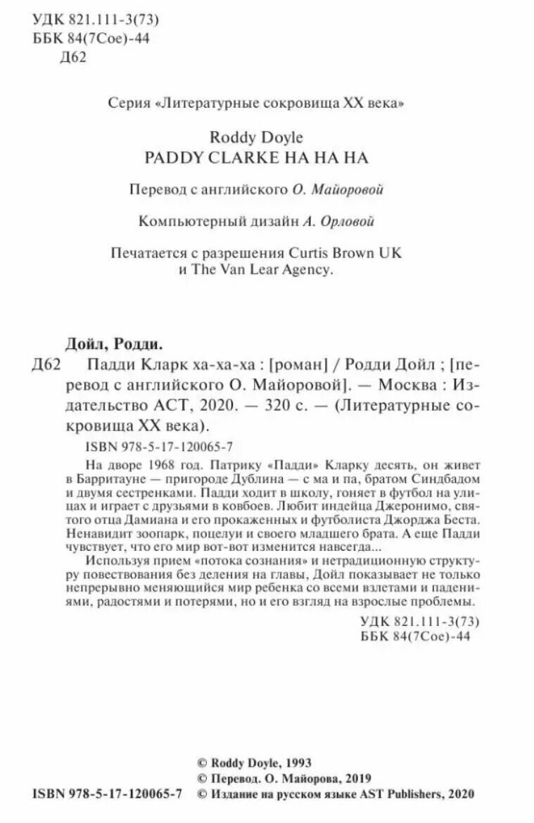 Книга: Падди Кларк ха-ха-ха (Родди Дойл); Издательство АСТ, 1993