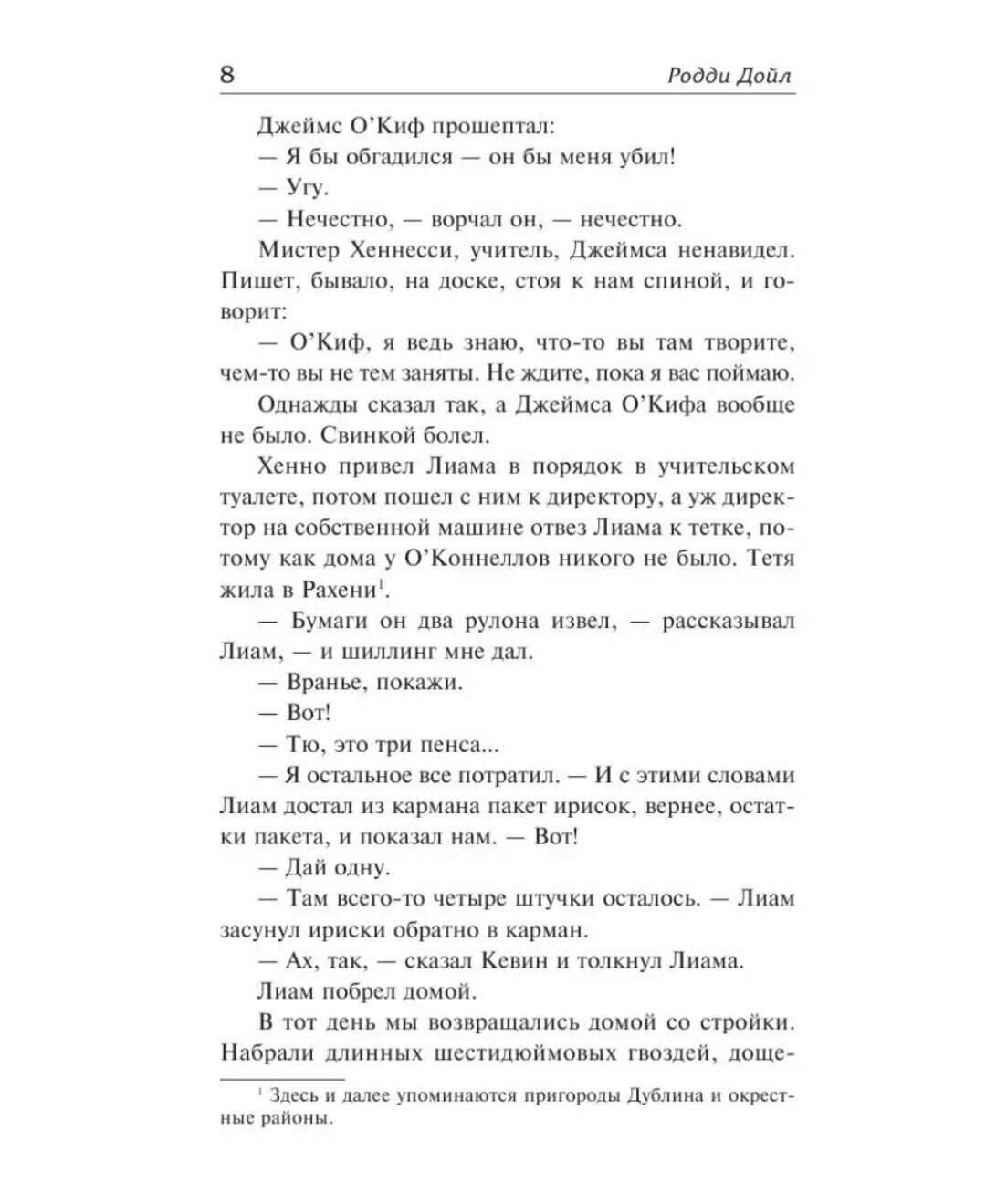 Используя прием «потока сознания» и нетрадиционную структуру повествования без деления на главы, Дойл показывает не только непрерывно меняющийся мир ребенка со всеми взлетами и падениями, радостями и потерями, но и его взгляд на взрослые проблемы.