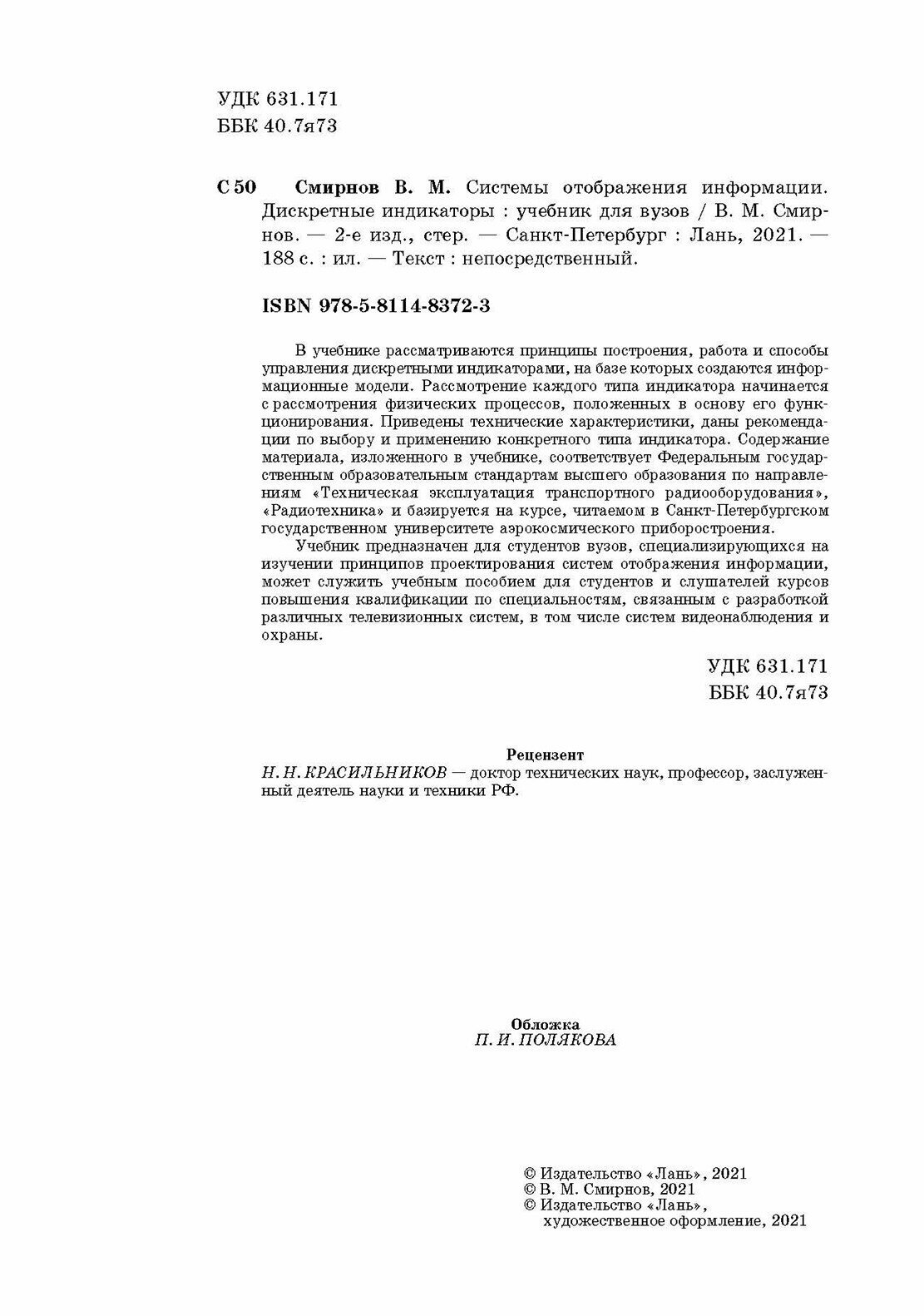 Системы отображения информации. Дискретные индикаторы. Учебник для вузов (Смирнов Виктор Михайлович); Лань, 2020