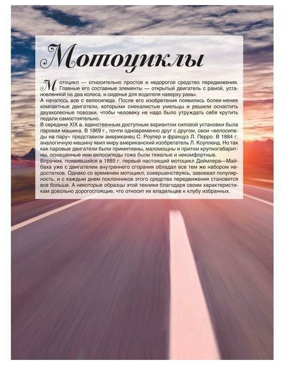 Чтобы понять масштабность и скорость технического прогресса, не обязательно самому изучать историю, начиная с изобретения колеса. Достаточно открыть эту книгу и собственными глазами убедиться в гениальности инженерной мысли человека. Здесь перед вами предстанут самые выдающиеся образцы техники - от ретроавтомобилей и первых парусных судов до современных сверхзвуковых самолетов и космических станций. Уникальные фотографии позволят рассмотреть эти машины во всех подробностях и представить их реальные размеры и внешний вид. А из содержательных статей вы узнаете, для чего предназначены различные виды техники, как они работают и применяются человеком. И если некоторые технологии уже устарели и стали историей, то другие - то же колесо и парус - используются до сих пор.