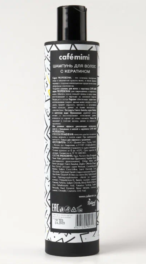 Попробуй шампунь для волос с кератином CafeMiMi серии PROFESSIONAL для поврежденных и окрашенных волос. Шампунь нежно очищает волосы и кожу головы, восстанавливает и заряжает их жизненной энергией. Входящий в состав Кератин обеспечивает эффективное восстановление поврежденных волос изнутри и по всей длине, придает упругость, прочность и естественный блеск волосам, делает их более послушными и шелковистыми. Экстракты Гинкго Билоба, корня Имбиря и цветочная вода Франжипани укрепляют волосы, питают и восстанавливают естественный уровень влажности от корней до самых кончиков. Масло Ши увлажняет и смягчает волосы, делает их сильными и здоровыми.