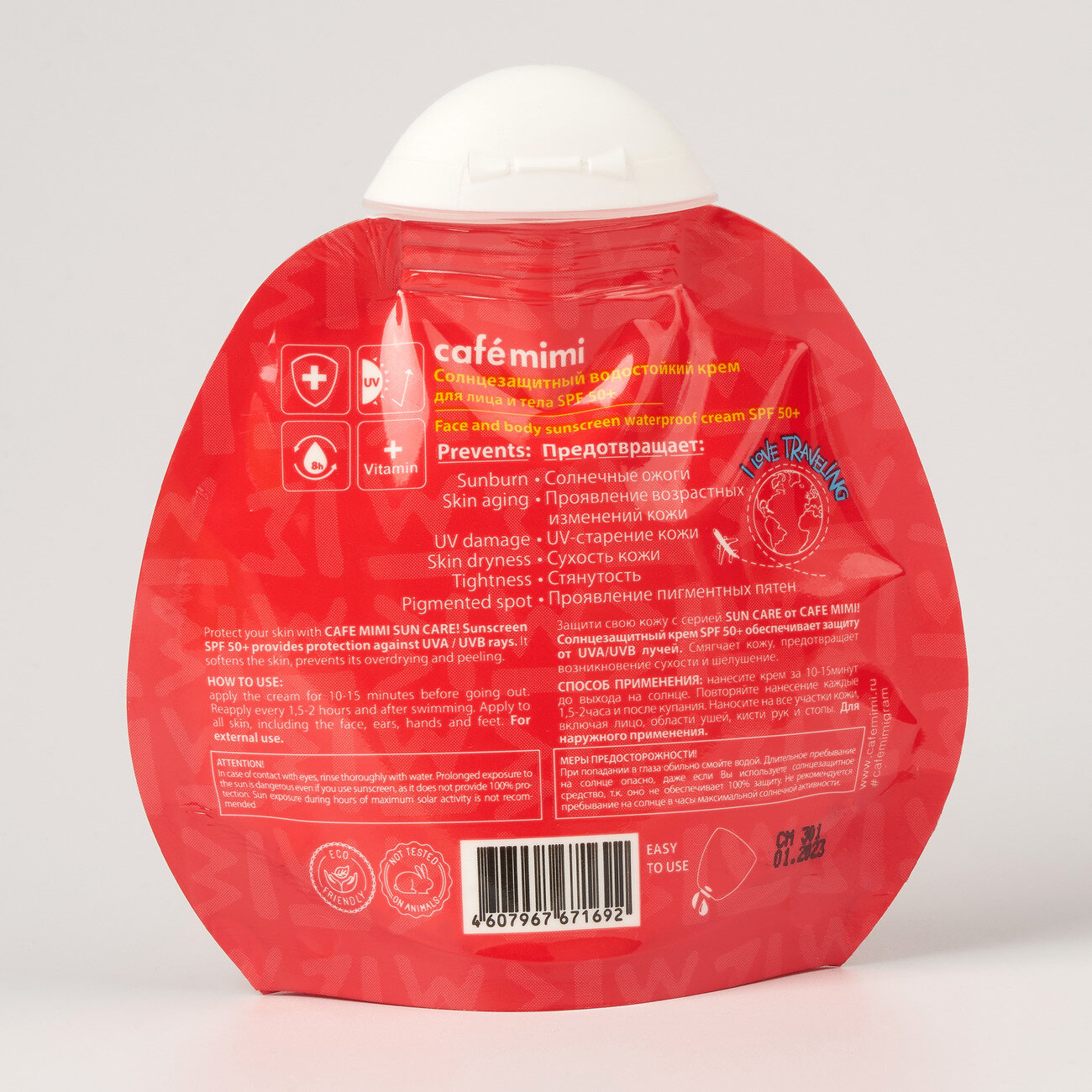 Описание товара:Защити свою кожу с серией SUN CARE от CAFE MIMI! Солнцезащитный крем SPF50+ обеспечивает защиту от UVA/UVB лучей. Смягчает кожу, предотвращает возникновение сухости и шелушение.Состав товара:Новый состав 11.01.2022: Aqua, Octocrylene, Ethylhexyl Salicylate, Ethylhexyl Methoxycinnamate, Caprylic/Capric Triglyceride, Glyceryl Stearate, Dimethicone, Glycerin (растительного происхождения), Titanium Dioxide, Steareth-21, Ceteareth-20, Cetearyl Alcohol, Ethylhexyl Stearate, Steareth-2, Butyrospermum Parkii Butter, Butyl Methoxydibenzoylmethane, Linoleic acid, Linolenic acid (витамин F), Tocopheryl Acetate (витамин Е), Citric Acid, Phenoxyethanol, Ethylhexylglycerin, Tocopherol, Parfum, Linalool. Старый состав: Aqua, Octocrylene, Ethylhexyl Salicylate, Ethylhexyl Methoxycinnamate, Caprylic/Capric Triglyceride, Glyceryl Stearate, Vegetable Glycerin (растительного происхождения), Dimethicone, Titanium Dioxide, Steareth-21, Cetearyl Alcohol, Ceteareth-20, Ethylhexyl Stearate, Lanolin, Steareth-21, Butyl Methoxydibenzoylmethane, Phenoxyethanol, Ethylhexylglycerin, Tocopheryl Acetate (витамин Е), Linolenic Acid (витамин F), Parfum, Benzyl Salicylate.Меры предосторожности:избегать попадания в глазаСпособ применения:СПОСОБ ПРИМЕНЕНИЯ: нанесите крем за 10-15минут до выхода на солнце. Повторяйте нанесение каждые 1,5-2 часа и после купания. Наносите на все участки кожи, включая лицо, области ушей, кисти рук и стопы. Для наружного применения..МЕРЫ ПРЕДОСТОРОЖНОСТИ! При попадании в глаза обильно смойте водой. Длительное пребывание на солнце опасно, даже если Вы используете солнцезащитное средство, т.к. оно не обеспечивает 100% защиту. Не рекомендуется пребывание на солнце в часы максимальной солнечной активности.