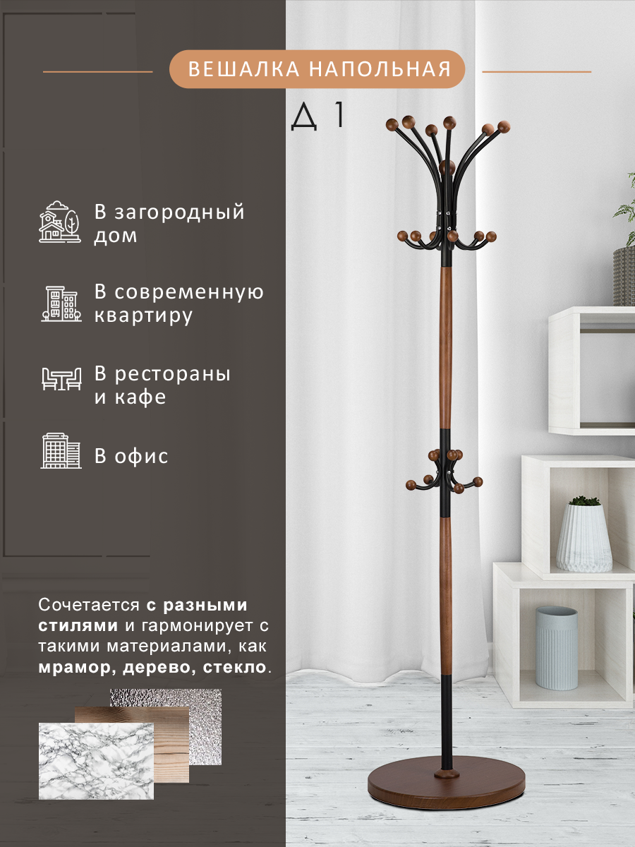Вешалка Мебелик напольная Д 1 Металлик/Венге Hoff