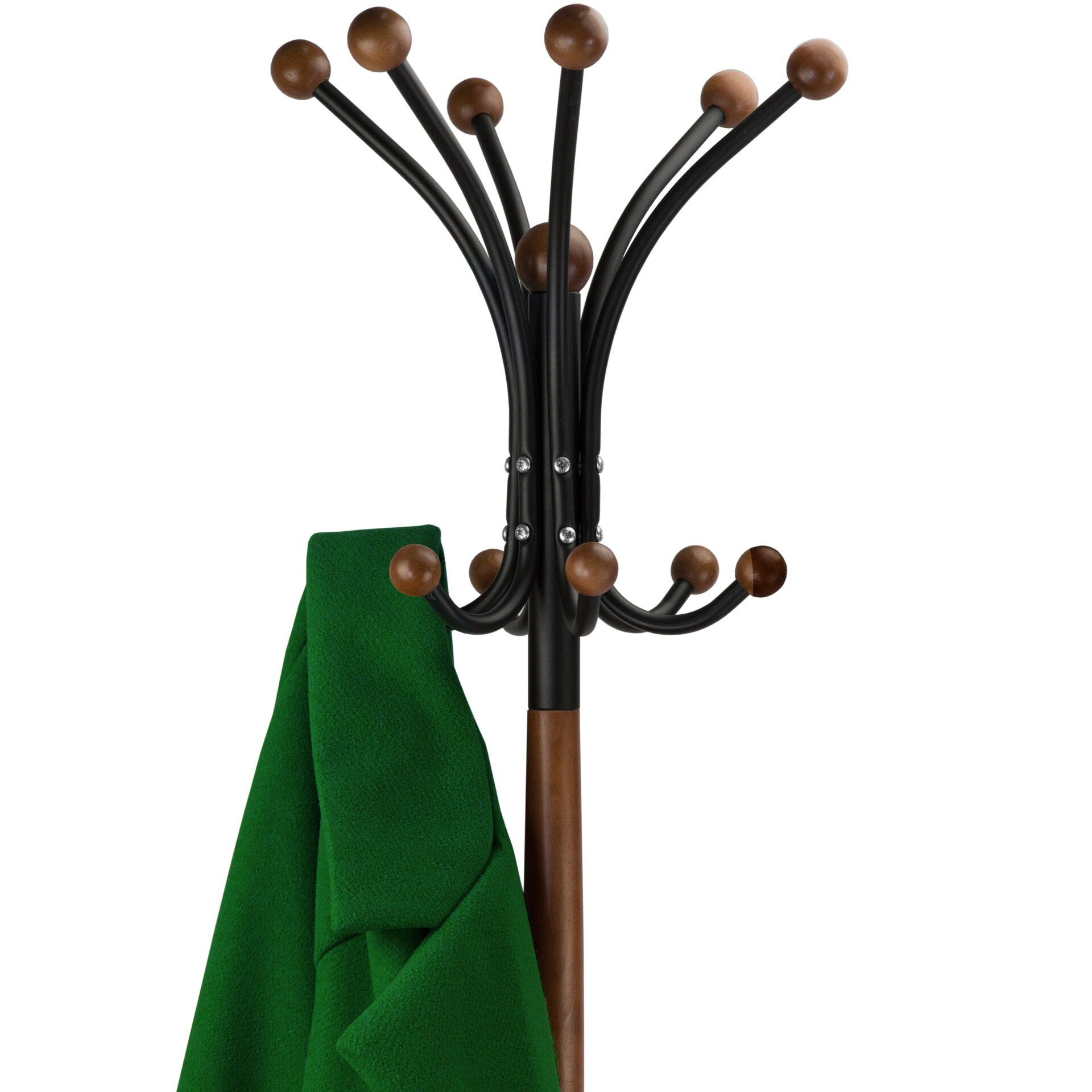 Элегантная, устойчивая вешалка для верхней одежды в кабинет, приемную, небольшой офис, кафе. На 6 посетителей. Шесть крючков для одежды, шесть крючков для головных уборов, четыре крючка для сумок, можно вешать одежду на вешалках-плечиках. Очень массивное основание, устойчивая конструкция, износостойкий лак на шариках. Крючки сделаны из стальной трубки, выдерживают значительные перегрузки, декоративные элементы из натурального бука. Компактная упаковка, легко транспортировать и собирать, самая элегантная вешалка из серии.
