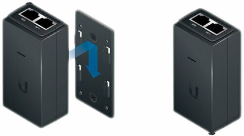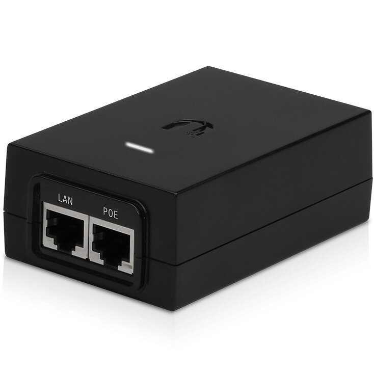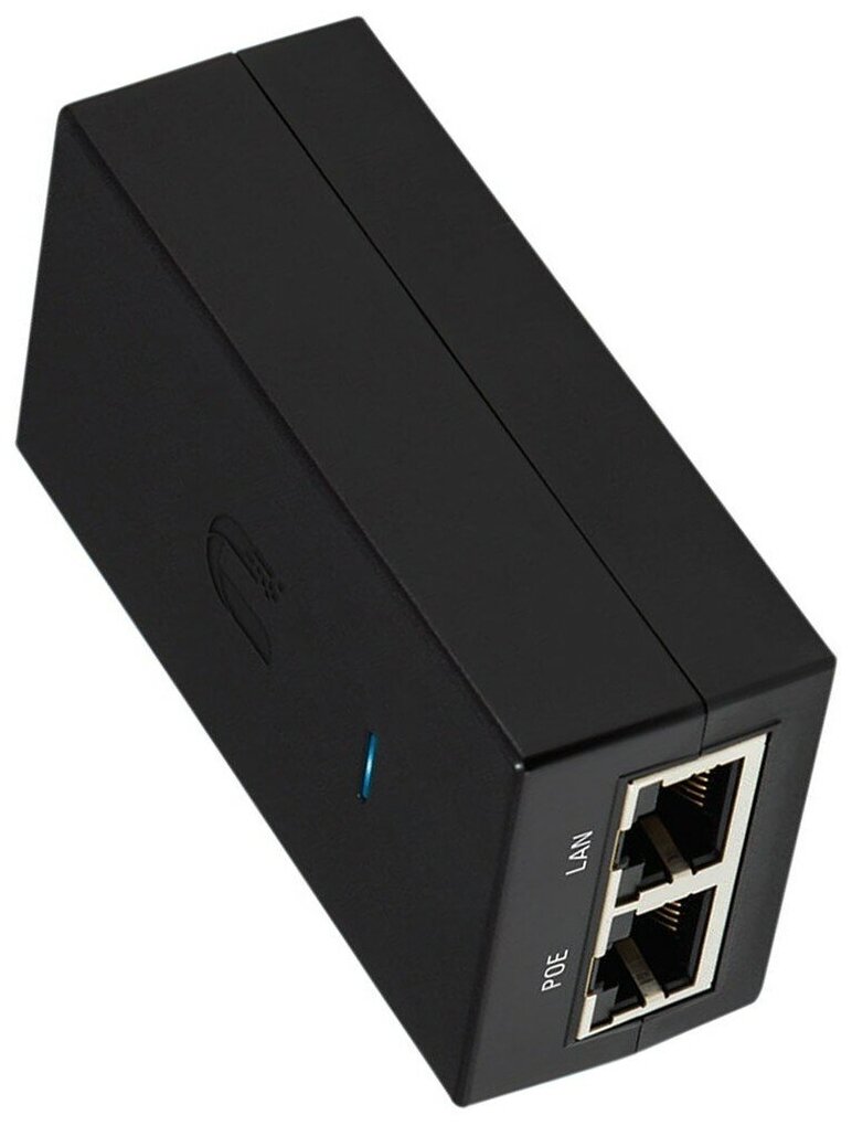 Блок питания PoE Ubiquiti подходит для питания роутеров, маршрутизаторов и прочего сетевого оборудования, получающего питание по технологии Power over Ethernet через кабель типа витая пара. Снабженный заземлением в качестве защиты от электростатических зарядов адаптер подключается к сети 220 В через сетевой шнур. Выходное напряжение блока питания, совместимого с устройствами бренда Ubiquiti и не только, равняется 24 В, сила тока - 0.5 А. На передней панели адаптера питания PoE Ubiquiti расположены два ярких светодиода. Один из них является индикатором Ethernet-подключения к LAN-порту, а другой информирует, что адаптер подключен к сети питания. Устройство можно разместить на стене при помощи металлического кронштейна, вошедшего в комплект.