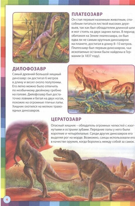 Перед вами детская энциклопедия с яркими картинками. Для ребёнка, который недавно научился читать и уже готовится к школе, наша книга – верный помощник в получении знаний. На страницах этой красочной энциклопедии кратко и понятно рассказывается о динозаврах и доисторических животных, загадочном Древнем Египте. Ваш ребёнок самостоятельно (или вместе с вами) сможет также прочитать о самых разных животных, обитающих на суше и в воде, узнает много нового о теле человека.