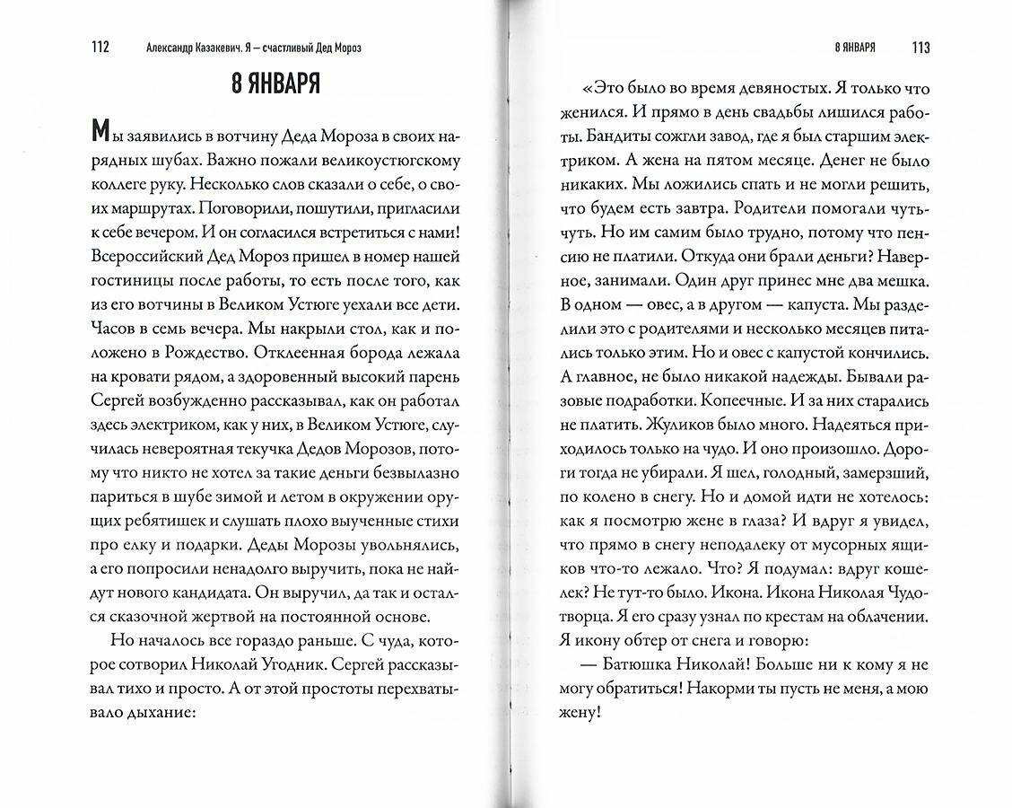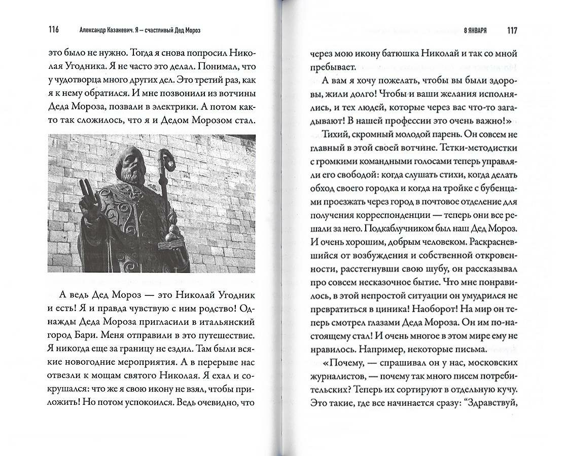 Александр Казакевич — журналист, киновед, путешественник, сценарист, телеведущий на канале «Культура». Его новая книга «Я — счастливый Дед Мороз!» — это современная рождественская сказка для взрослых, в которой соседствуют приключения, детектив, история настоящей любви и древние предания, связанные с Николаем Угодником, образ которого послужил появлению новогоднего Деда с подарками. Однажды герой книги примерил костюм Деда Мороза. Это изменило не только его жизнь, но и судьбы многих других людей. Теперь он должен решить невероятные задачи: найти сокровища, которые связаны с именем Николая Чудотворца. А для этого нужно проехаться по русским городам, по древним монастырям, попасть в Финляндию, Китай, оказаться в самых сокровенных местах Святой Земли и понять очень важные вещи, которые касаются любви и ненависти, жизни и смерти, чудес и житейской прозы, а также многих совпадений, которыми наполнены наши судьбы.