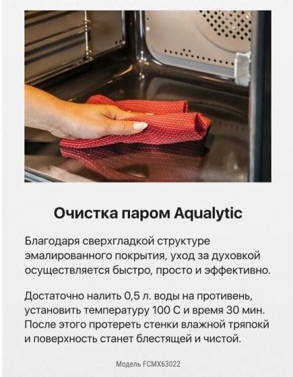 Большой объем духовки позволит вам готовить любимые блюда на всю семью. Подсветка камеры поможет контролировать процесс приготовления.