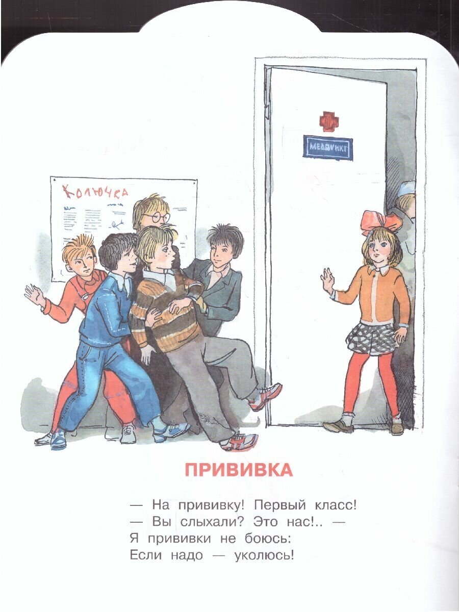 В книге два стихотворения Сергея Михалкова: "А что у вас?" и "Прививка". На рисунках персонажи как живые. Работы знаменитого художника-графика, заслуженного художника РСФСР Германа Алексеевича Мазурина просто не могут быть в плохой книжке! Интересно, что картинка с мальчиками на велосипеде изначально иллюстрировала другое стихотворение: она взята из книги С. Михалкова "Мы с приятелем" (М.: Детская литература, 1965). Однако и в этой книге она вполне уместна. -