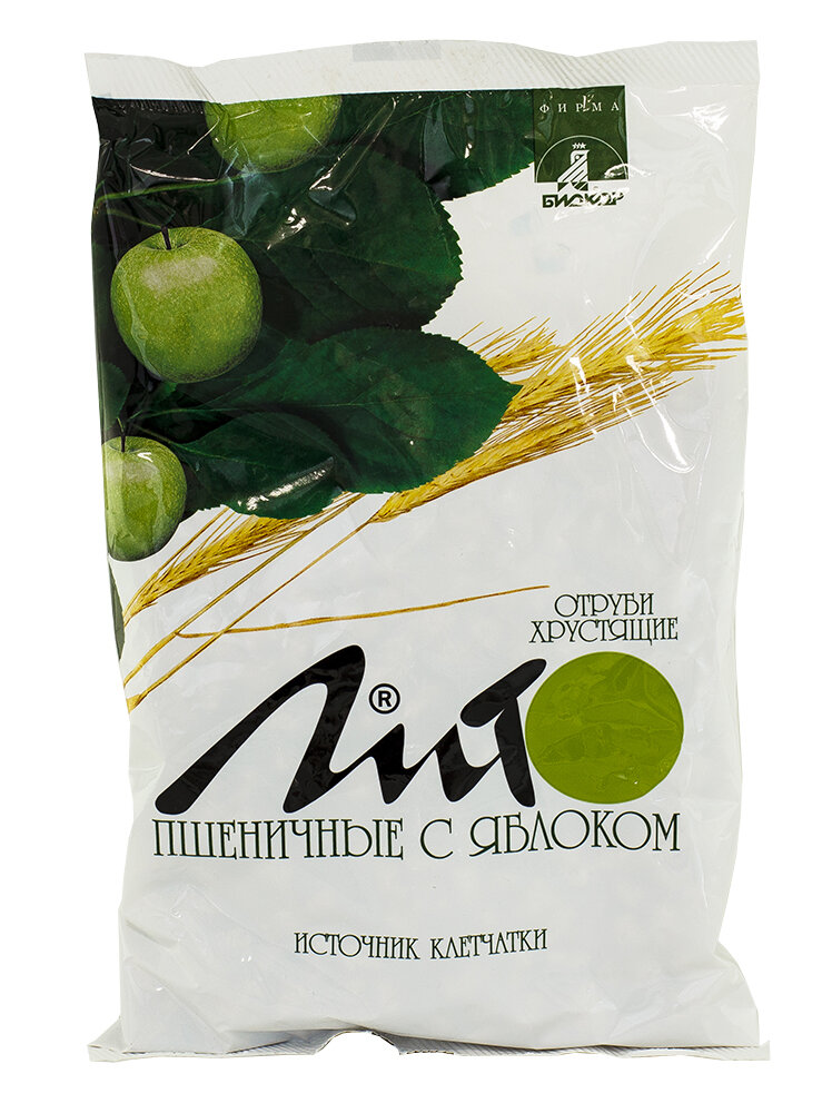 Отруби пшеничные хрустящие «ЛИТО» с кальцием и яблоком, 200 г — натуральный продукт для здорового питания, содержащий пищевые волокна злаков (клетчатку).