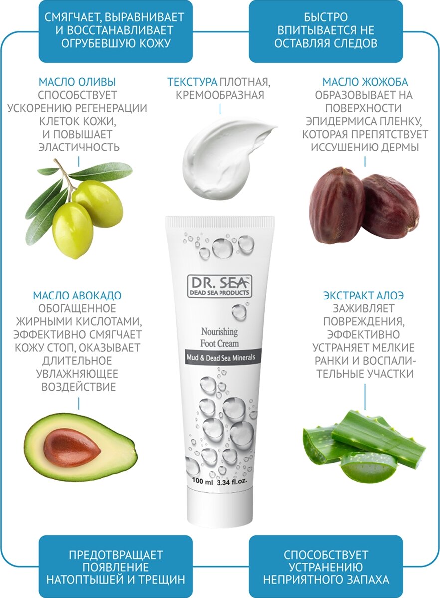 Обеспечить активное лечение, увлажнение и питание коже наших ног способен крем DR.SEA. Созданный на основе передовых исследовании в области дерматологии, он гарантирует впечатляющий эффект уже после первого применения.