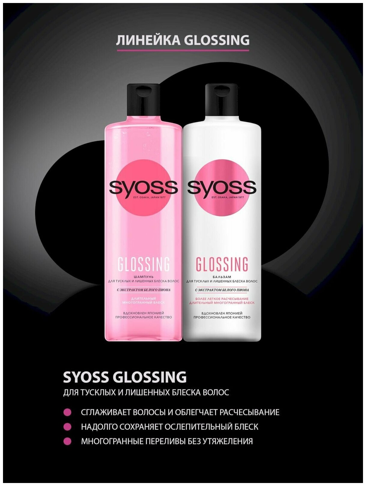 Бальзам для волос Syoss Glossing с экстрактом белого пиона 450мл Хенкель
