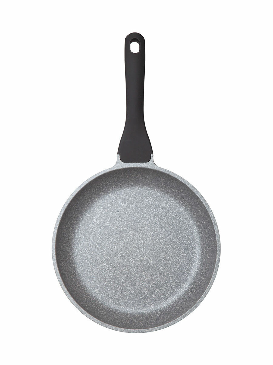 Литой алюминий. 5-слойное антипригарное покрытие ILAG Granitec с минералами. Можно использовать металлические инструменты. Ненагревающаяся ручка "Софт-тач". Для всех типов плит.
