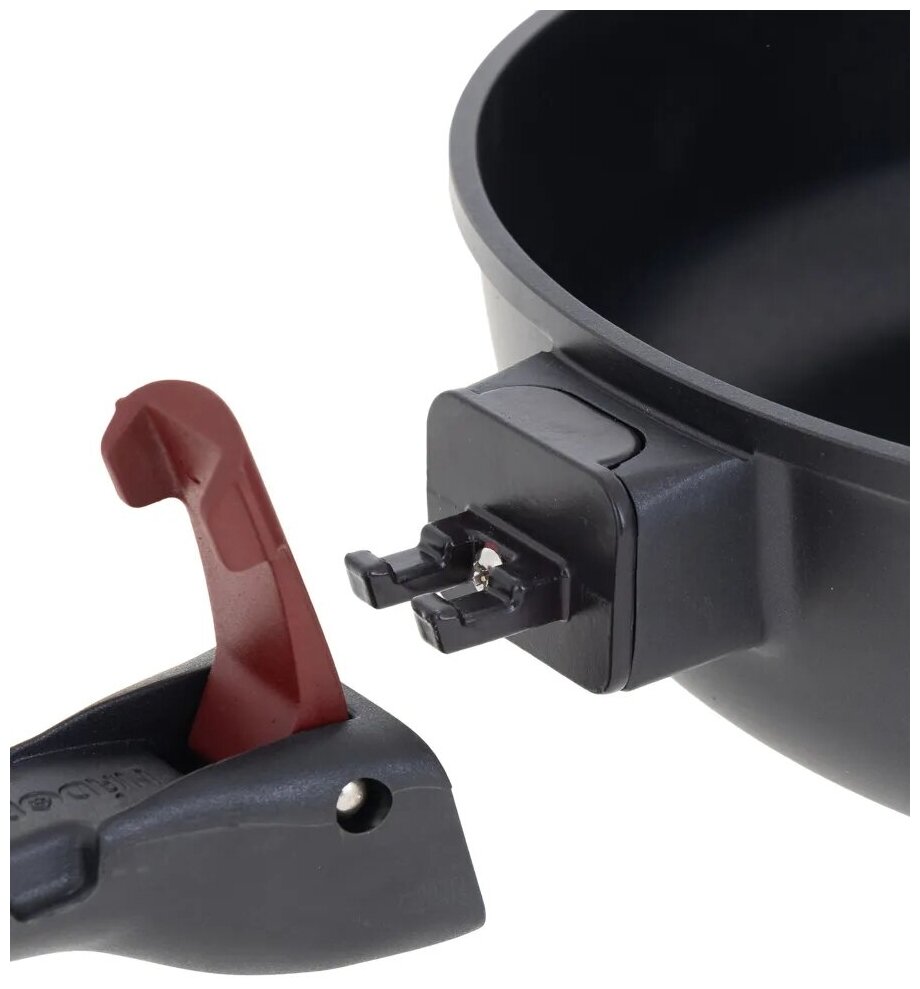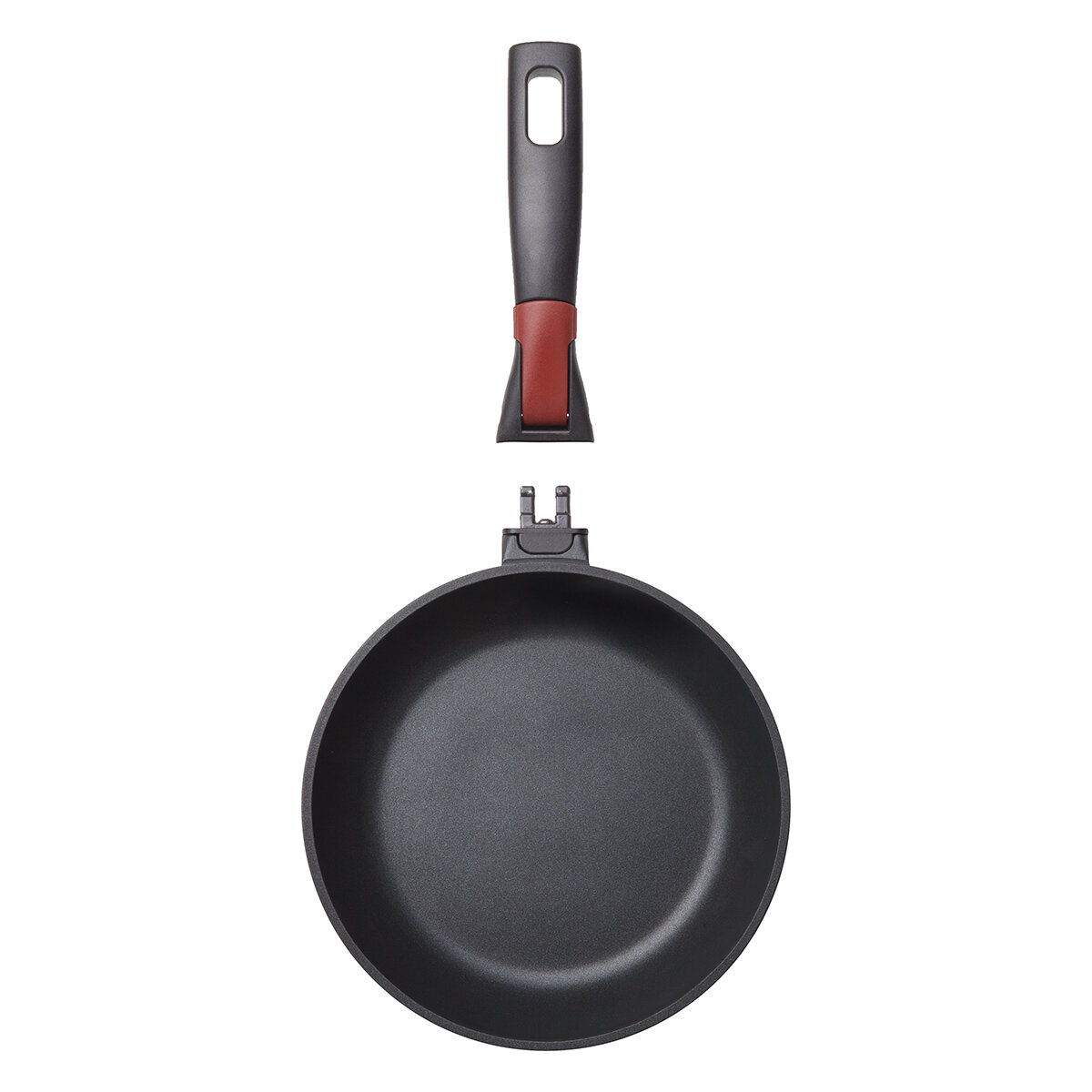Серия Vilma изготовлена из литого алюминия с особо прочным 4-слойным антипригарным покрытием ILAG Ultimate, усиленным минералами. Антипригарное покрытие ILAG Ultimate не содержит PFOA, кадмий, свинец, а также любых других вредных веществ и полностью безопасно. Высокая прочность антипригарного покрытия позволяет использовать при приготовлении пищи неострые металлические инструменты. Массивный корпус из литого алюминия обеспечивает равномерный нагрев всей поверхности посуды и не деформируется при нагревании и частого использования. Специальный термо-индикатор меняет цвет от черного до красного в зависимости от температуры сковороды. Красный цвет показывает, что достигнут оптимальный для начала приготовления нагрев до 160 °C. Удобная прочная ненагревающаяся съемная ручка из бакелита позволяет экономить пространство на кухне и использовать посуду в духовке. Подходит для всех типов плит, включая индукционные, а также для духовки если снять ручку или при температуре до 180 °C. Гарантия на алюминиевую посуду серии Vilma 5 лет.