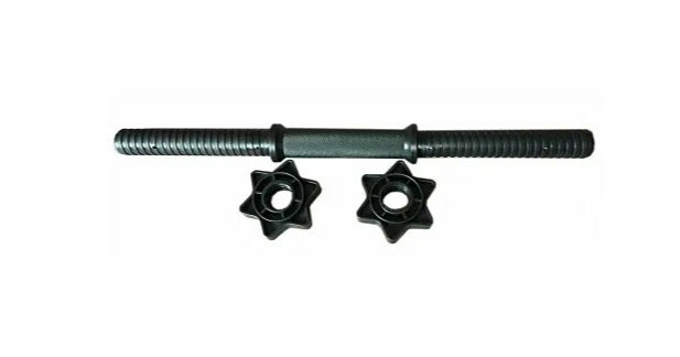 Гриф выполнен на стальной полой основе из прочного пластика. Предназначен для разборных гантель.
