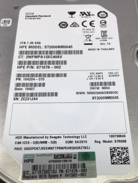 Жесткий диск HP 2TB 3.5" 7200rpm 12G 512n format for use with MSA products 841502-001