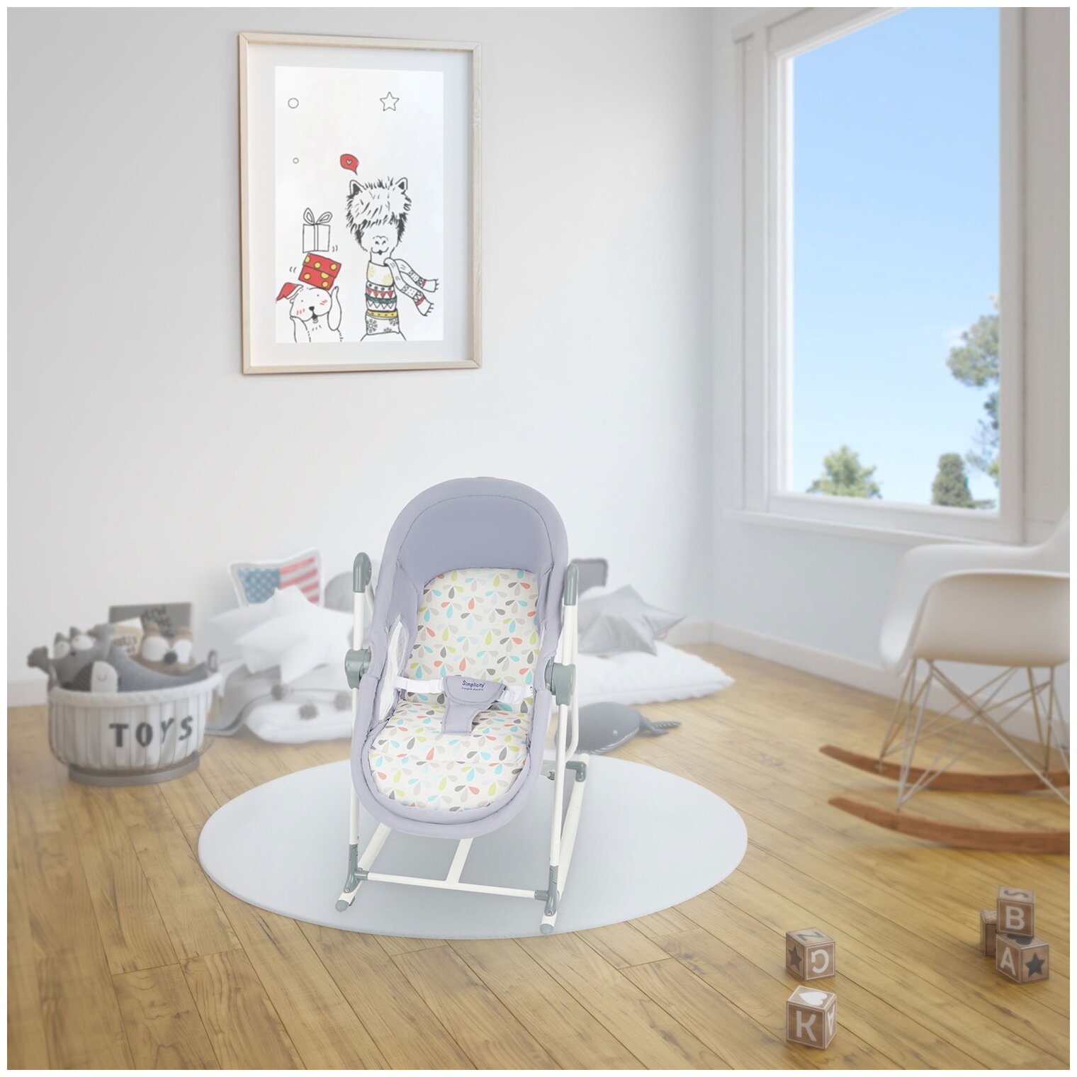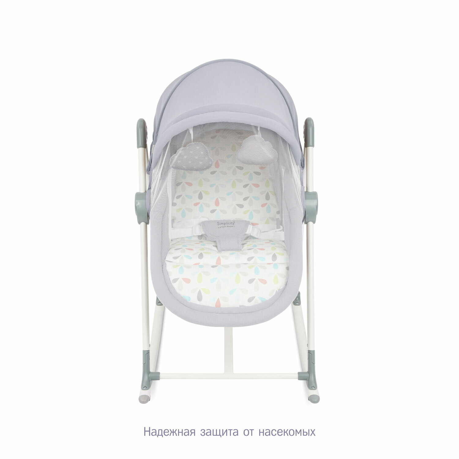 Simplicity 299777 Elite - это современная и удобная колыбель-трансформер для новорожденных, которая может использоваться не только для сна ребенка, но и в качестве люльки, качалки, шезлонга и стульчика. Благодаря возможности трансформации колыбель будет полезна с первых дней жизни ребенка и до 3-х летнего возраста.Колыбель имеет 5 вариантов использования:1. Кроватка для новорожденных. Благодаря просторному спальному месту, устойчивой конструкции и регулируемому капору можно создавать условия для безмятежного сна ребенка в любое время суток. При желании можно изменять высоту кроватки и в комплектацию входит мягкий несъёмный матрасик.2. Люлька. Качание выполняется вручную, традиционным способом на полозьях. Чтобы зафиксировать колыбель в неподвижном состоянии, достаточно повернуть стопор на полозьях. Для наблюдения за ребенком и вентиляции предусмотрены 2 окошка из прочной полиэфирной сетки. Для защиты от насекомых также имеется и москитная сетка, что позволяет пользоваться колыбелью на открытом воздухе.3-4. Шезлонг и Качалка. По мере взросления малыша колыбель Simplicity 299777 Elite можно трансформировать в шезлонг-качалку для новорожденных. На выбор предлагается 3 варианта положения спинки: лежа, полулежа и сидя. Для предотвращения выскальзывания ребенка в комплекте предусмотрены ремни безопасности с тканевым разграничителем для ножек.5. Стульчик. Когда малыш будет уверенно сидеть, колыбель можно превратить и в стульчик. Изменяя высоту стульчика, подбирается положение, при котором ребенок сможет сидеть за столом вместе со взрослыми.Быстрый и удобный способ складывания колыбели-трансформера Simplicity 299777 Elite делает эту модель идеальным решением не только для дома, но и для путешествий.