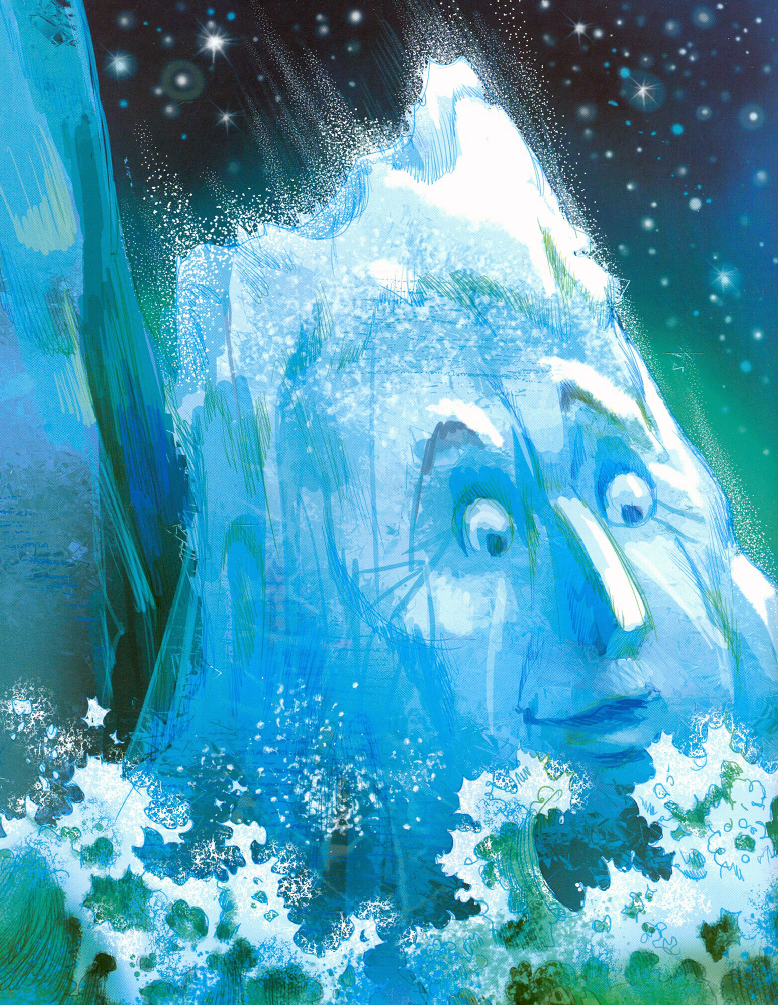 Первая история рассказывает не только о дружбе айсберга и кита и об их взаимовыручке, но и знакомит маленького читателя с тем, как возниает айсберг, какие он имеет особенности, почему он опасен и как его отслеживают. Мне очень понравилось, что герои предстают перед ребенком этакими "стариками" : киту, если не ошибаюсь 45 лет, а айсбергу-несколько тысяч. Думаю, дети будут под впечатлением.