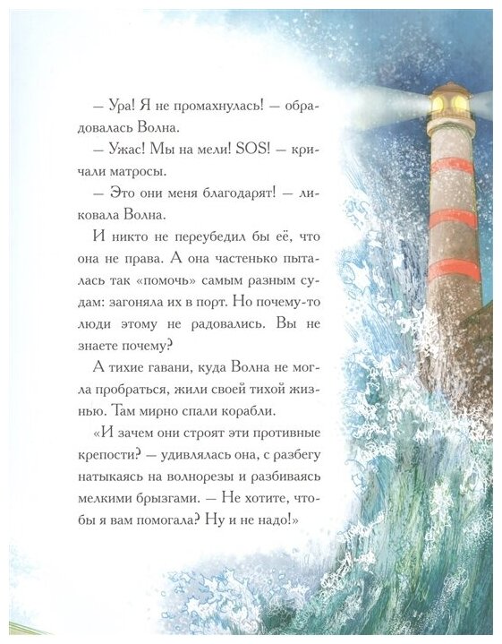 У любопытной весёлой Волны всегда было много интересных дел: полировать камни, размывать пещеры в скалистых берегах, строить дома из песка. Иногда Волна сажала суда на мель и пугала рыбок. Но однажды Волна и сама испугалась. Она увидела странные цветные «камни», которые не тонули, а плавали на поверхности вперемешку с крепкими верёвками, в которых запутывались рыбы и морские черепахи. Так Волна узнала, что такое мусор. А вскоре увидела, сколько бед он приносит океану. И тогда она рассердилась…