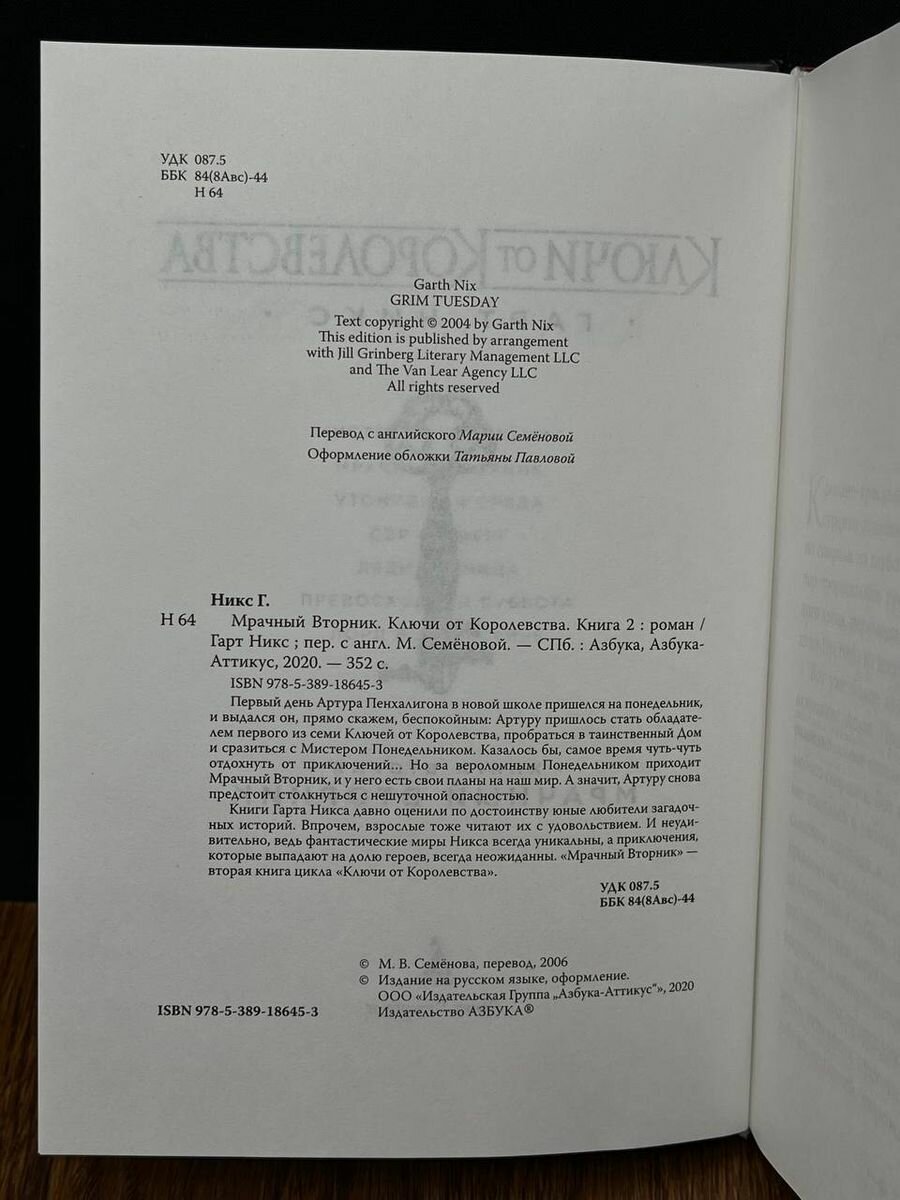 Мрачный Вторник. Ключи от Королевства. Кн. 2 (Никс Г.); Азбука Издательство, 2020