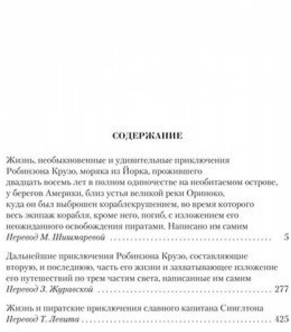 В настоящее издание, помимо двух романов о Робинзоне («Робинзон Крузо» и «Дальнейшие приключения Робинзона Крузо»), вошел роман «Жизнь и пиратские приключения славного капитана Синглтона», захватывающая дух история одного из самых грозных пиратов Индийского океана.