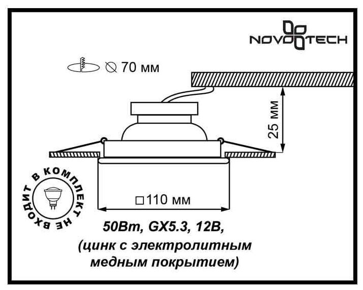 | Светильник Диаметр врезного отверстия, мм | 70 |