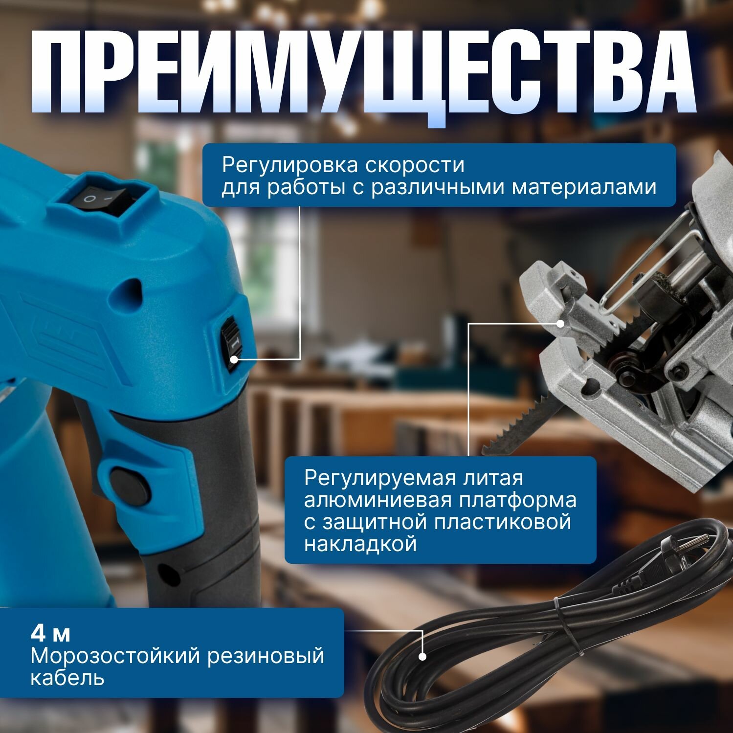 | Особенности конструкции | быстрозажимное крепление пилки, возможность подключения пылесоса, обрезиненная рукоятка, подсветка |