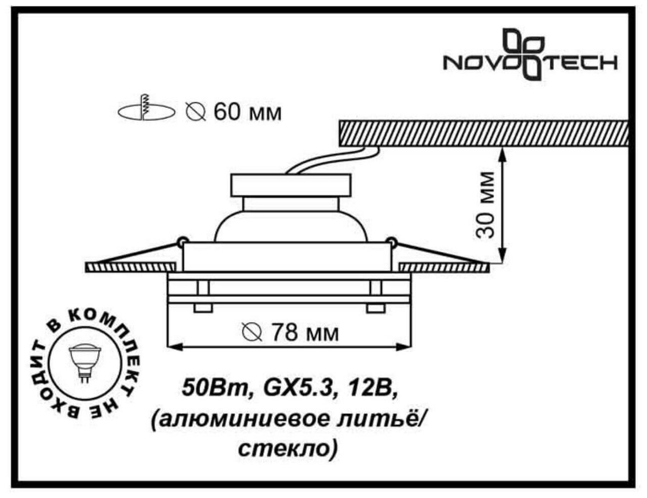 | Светильник Диаметр врезного отверстия, мм | 60 |
