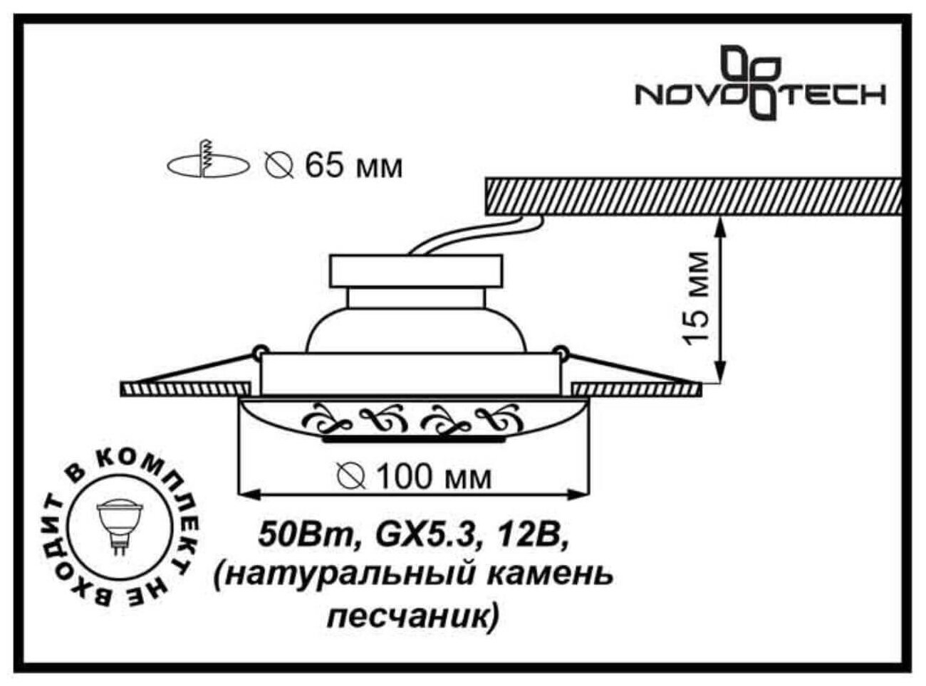| Светильник Диаметр врезного отверстия, мм | 65 |
