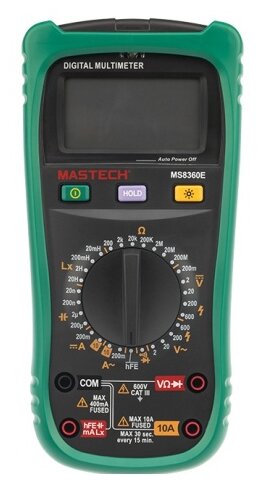 | Комплектация | Мультиметр, измерительные провода - 2 шт, компактная термопара (типа K) MS8360E, многофункциональный переходник, инструкция, коробка. |