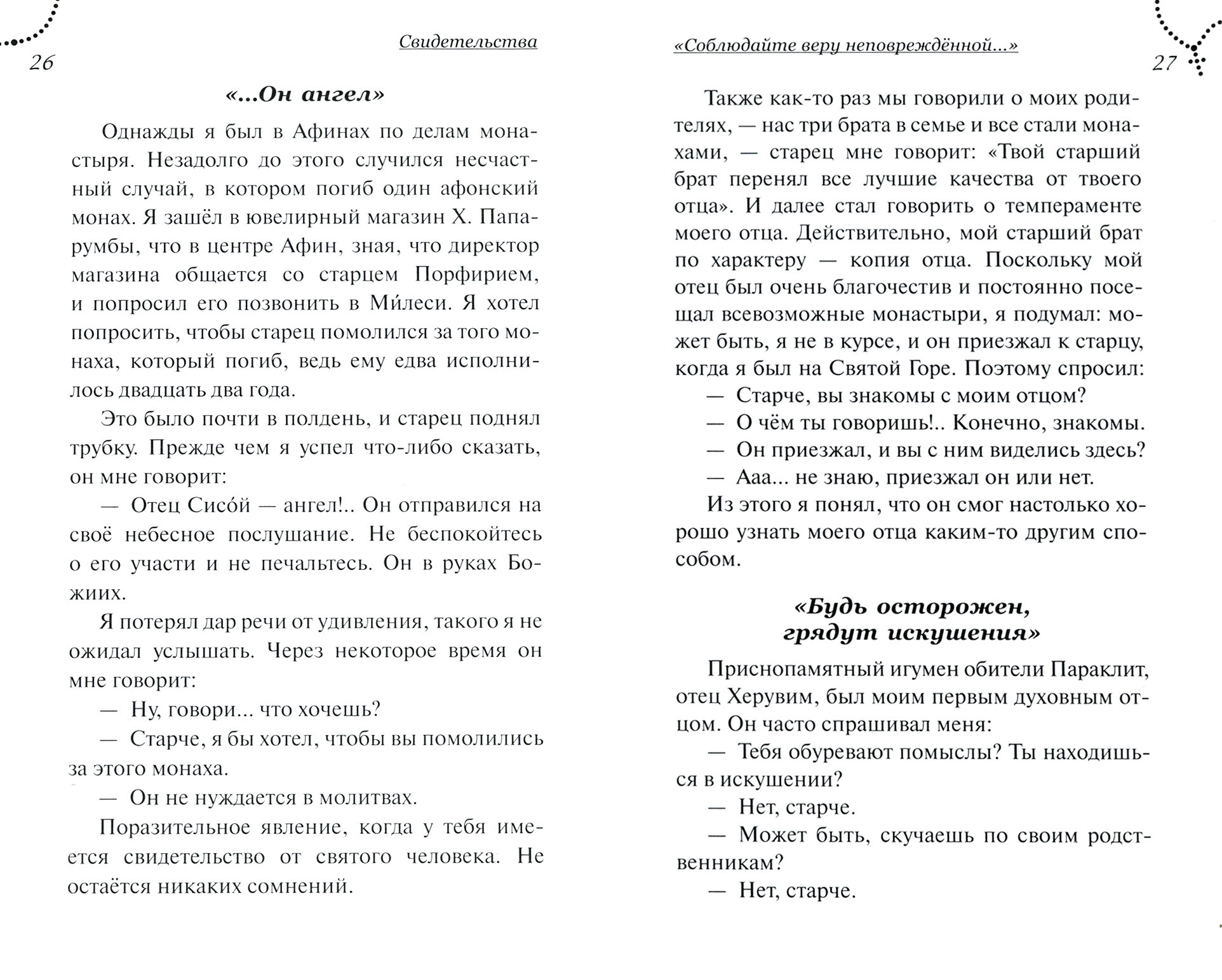 В книге «Преподобный Порфирий пророк нашего времени» описываются реальные события из жизни греческих христиан нашего времени. Помощь Господа по молитвам преподобного Порфирия Кавсокаливита меняет их убеждения, укрепляет маловерных и обращает к вере. Видя, как старец спасал от бед и недугов всех обращавшихся к нему, читатель начинает глубже понимать значение слов «духовник» и «духовное чадо», убеждается, что Господь всегда рядом с нами, и именно Его любовь, по искренним молитвам, идущим из чистого сердца, помогает преодолевать трудности, которые кажутся непреодолимыми.