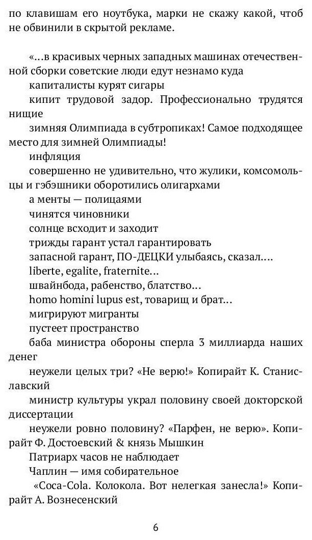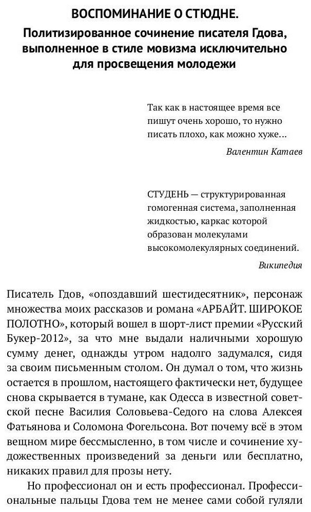 В этой необычной и увлекательной книге знаменитого современного мастера прозы, младшего литературного брата Василия Аксёнова и Василия Шукшина, собраны, как он сам их с ухмылкой именует, "художественные произведения последних лет" - рассказы, воспоминания, очерки, портреты, случаи, эссе, которые прекрасно монтируются друг с другом, создавая объемный портрет нашего безумного времени, где реальность зачастую фантастичнее вымысла. Евгений Попов смеется, язвит, грустит, радуется, с нежностью вспоминает ушедших товарищей. Времена меняются, но люди остаются людьми: праведники праведниками, дураки дураками, мерзавцы мерзавцами, считает он.