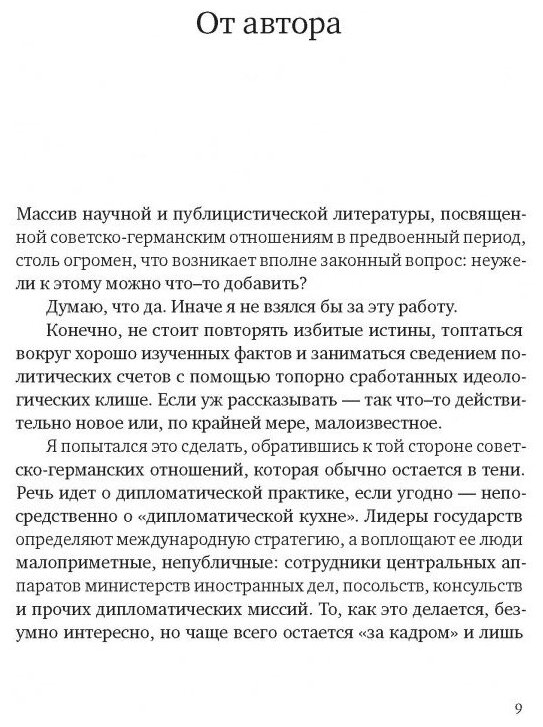Новая книга историка и дипломата Артема Рудницкого посвящена советско-германским отношениям в предвоенный период, точнее - дипломатической "кухне", и основана в первую очередь на уникальной подборке архивных документов: служебной переписке, шифртелеграммах, официальных нотах, меморандумах, справках и частных письмах. Время большой внешнеполитической игры совпадает с драматическими событиями внутри страны и дипломатического ведомства. На смену высокопрофессиональным кадрам, подготовленным Чичериным и Литвиновым, приходят другие люди: идеологически проверенные, но зачастую плохо разбирающиеся в механизмах и практике дипломатической службы. Многие из прежних дипломатов расстреляны или отправлены в лагеря.