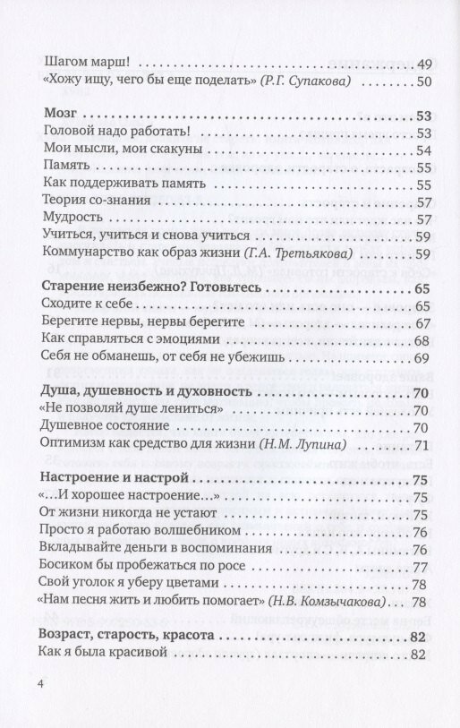 В последнее время люди во всем мире более активно стали рассуждать о старении человека, о зависимости между возрастом и счастьем. Ученые исследуют долгожителей и зоны их проживания, ищут методики, как управлять своим здоровьем, как предотвращать негативные изменения в организме. Автор этой книги - журналист районной газеты, ныне на заслуженном отдыхе, как - то тоже задумалась о своем возрасте и решила выяснить, существует ли она, осень нашей жизни, когда наступает и надо ли думать о ней с грустью. На примере своих современниц узнала, как не поддаваться годам, как сохранить форму и содержание, не впасть в депрессию и радоваться жизни. Как определить для себя мотивацию, чтобы прожить подольше и получать удовольствие от жизни. Автор надеется, что книга будет интересна тем, кто уже размышлял о том, какой может быть счастливая старость, как подготовить себя к новому возрасту, приспособиться жить с новыми болячками, если они настигнут к старости, как сохранить оптимизм, позитивный настрой на всю оставшуюся жизнь, с возрастом оставаться независимым и активным. Может быть, книга послужит поводом для размышлений о себе и окружающих, о возрасте и о жизни, о времени новых возможностей.