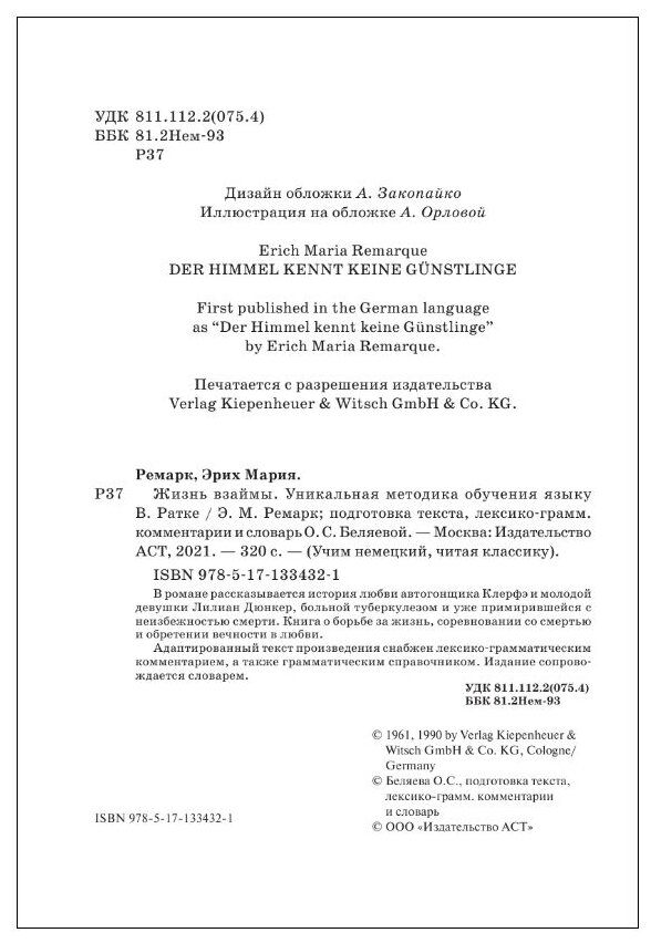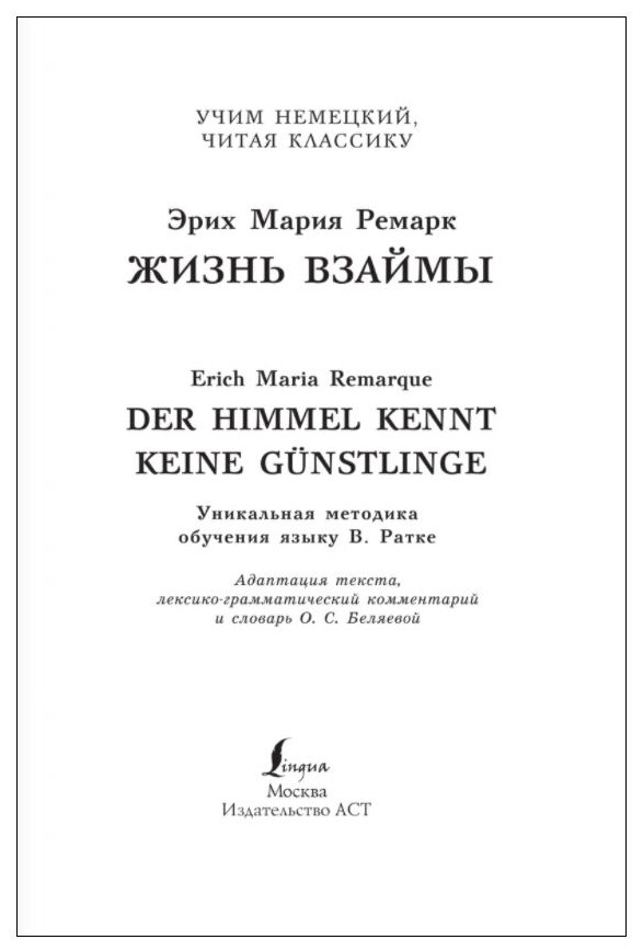 Жизнь взаймы. Уник. метод. обучения языку В. Ратке (Эрих Мария Ремарк); АСТ, 2020