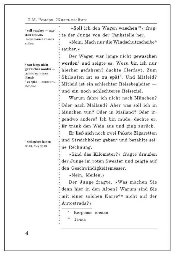 Невероятно эффективный способ изучения немецкого языка. Читаешь прекрасный роман любимого автора на языке оригинала, это способствует быстрому погружению в языковую среду, лёгкому запоминанию незнакомых слов и конструкций. А прямо на полях, рядом с основным текстом есть пояснения и ссылки на страничку, где можно сразу же прочесть соответствующее данному грамматическому явлению правило! Это очень удобно.