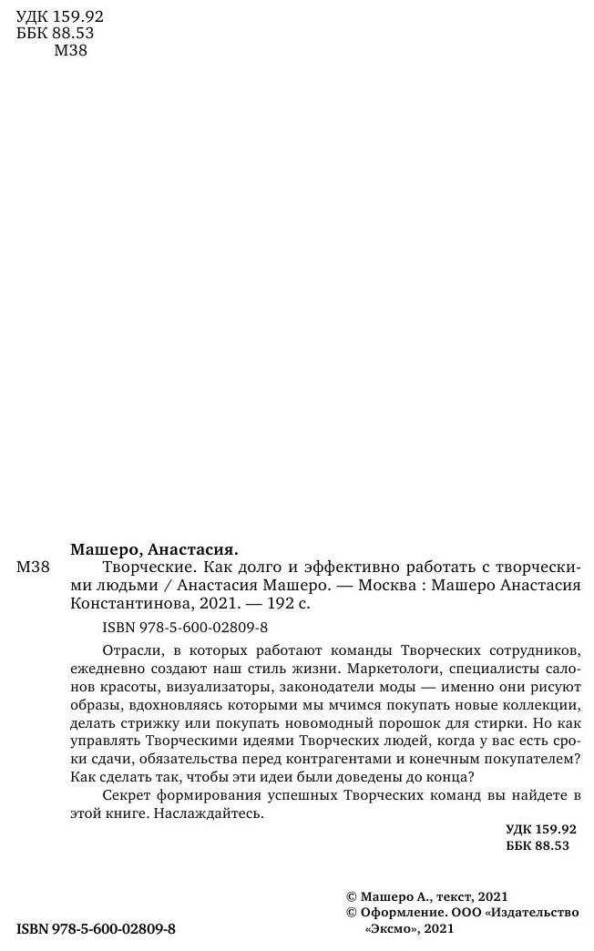 Творческие. Как долго и эффективно работать с творческими людьми (Машеро Анастасия); ООО "Издательство "Эксмо", 2020