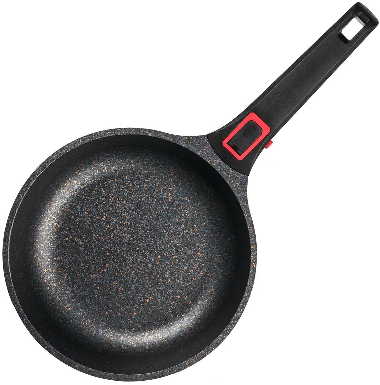 Съемная бакелитовая ручка не нагревается при использовании конфорки или газовой горелки, не превышающей диаметр дна сковороды