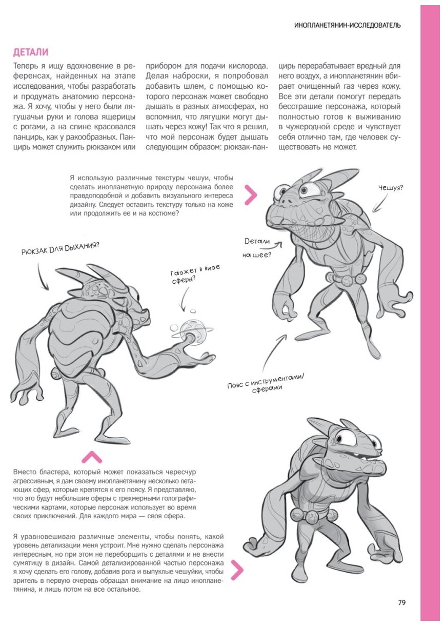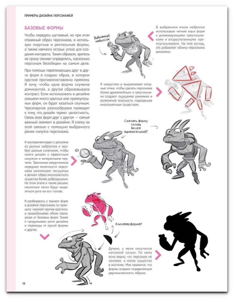 Редкая на наших книжных полках книга для тех, кто хочет сделать рисование своей профессией. Особая ценность издания заключается в том, что ее авторы не учат никого рисовать, а учат думать, что, как ни странно, самое важное в любой работе. Кто ясно мыслит, тот ясно компонует (с). В книге доходчиво разобраны этапы разработки персонажей, которые легко можно применить к любым другим видам рисовальных проектов. Здесь вы найдете советы по работе с референсами, стадиками, предварительными скетчами. Самое важное - через мастер-классы профессионалов своего дела показан лаконичный постепенный процесс поиска решения к конкретно поставаленной задаче