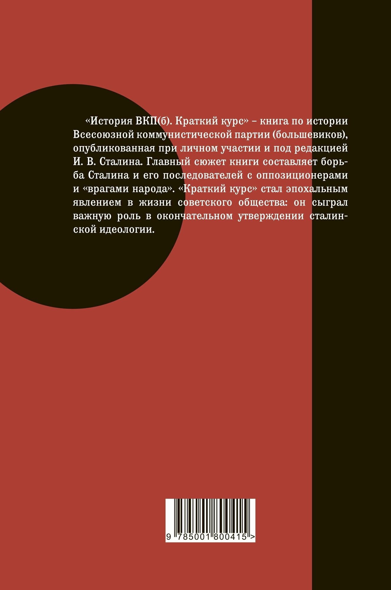 "История ВКП(б). Краткий курс" - книга по истории Всесоюзной коммунистической партии (большевиков), опубликованная при личном участии и под редакцией И.В. Сталина. Главный сюжет книги составляет борьба Сталина и его последователей с оппозиционерами и "врагами народа". "Краткий курс" стал эпохальным явлением в жизни советского общества: он сыграл важную роль в окончательном утверждении сталинской идеологии.