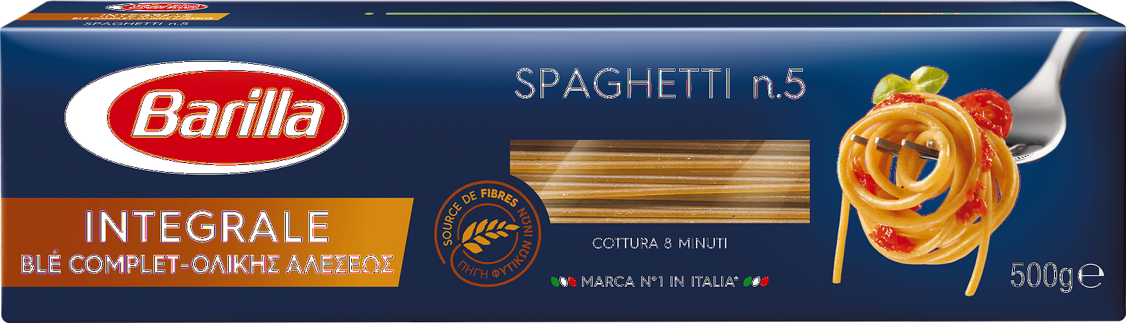 Описание товара:Изготовленные из 100% цельного зерна, спагетти Integrale от Barilla являются отличным источником пищевых волокон. Они идеально подойдут всем, кто хочет увеличить количество клетчатки и цельного зерна в рационе, не жертвуя вкусом.Состав товара:Мука цельнозерновая из твердой пшеницы, вода.Способ приготовления:Варить 8 минут в кипящей подсоленной воде.Меры предосторожности:Хранить в сухом прохладном месте. Может содержать следы сои.